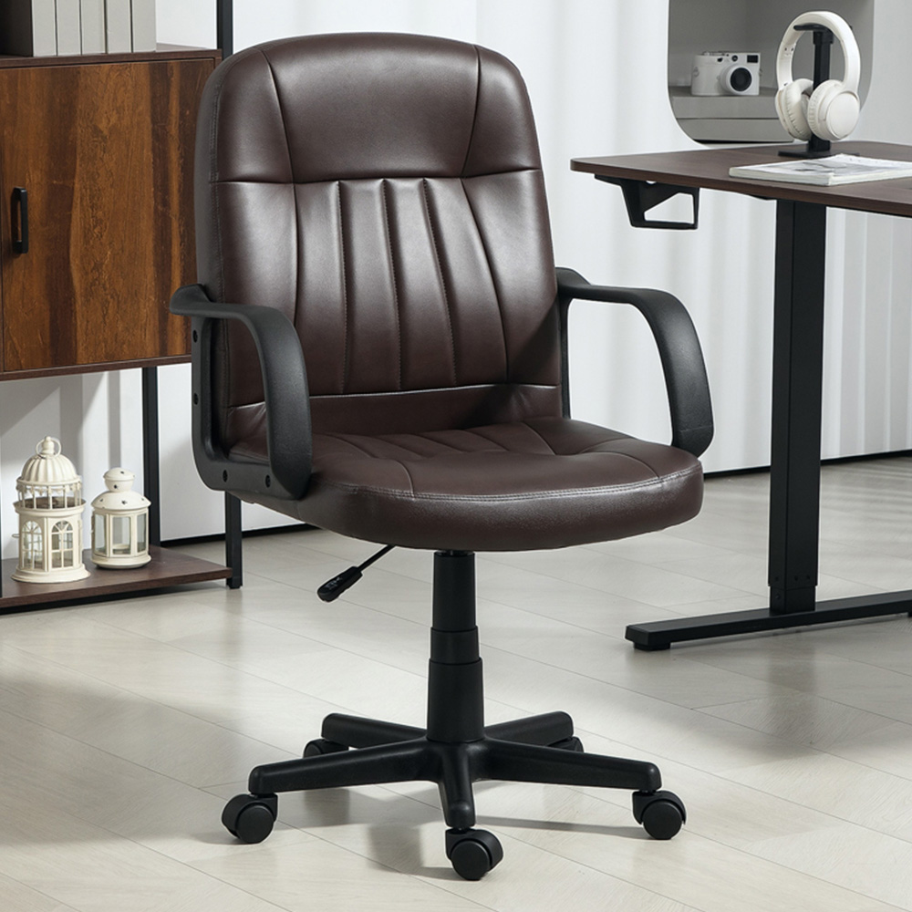 Add comfort to your workspace with Portland Dark Brown PU Leather Swivel Office Chair. It is made from the faux leather upholstery and comes with the large size and supportive back. To keep you supported and comfortable all-day long it includes the ergonomic chair features a swivel seat, armrests, back and thick padding. It comes complete with five wheels to move around easily.