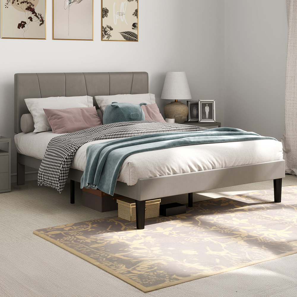 Drift softly into sleep with this Portland King Size Bed Frame. The velvet-feel headboard design brings a soft and luxurious touch to bedrooms, so you can set it between five different positions to cater for different mattresses. Thanks to the metal frame for a strong core, it comes with 12 wooden slats to support the mattress in place. Complete with a 20cm under-bed clearance for discreet storage, it meets BS5852 flame-retardant standards to ensure safety.