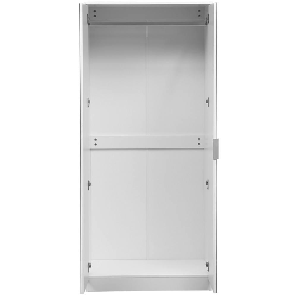 This spacious wardrobe boasts two mirrored doors, instantly brightening any room and creating a sense of airy openness. Its generous interior offers ample hanging space and shelving, providing organised storage for all your clothes and linens. Crafted from a durable wood composite and wood, the high-quality mirrored doors are built to last. For cleaning, simply wipe down with a dry cloth; glass cleaner and a soft cloth are recommended for the mirrors to maintain their pristine shine. Measuring W79 × D50 × H180 cm, this wardrobe arrives flat-packed in two packages and requires self-assembly using the detailed instructions provided. For optimal stability, assemble the wardrobe horizontally before standing it upright.