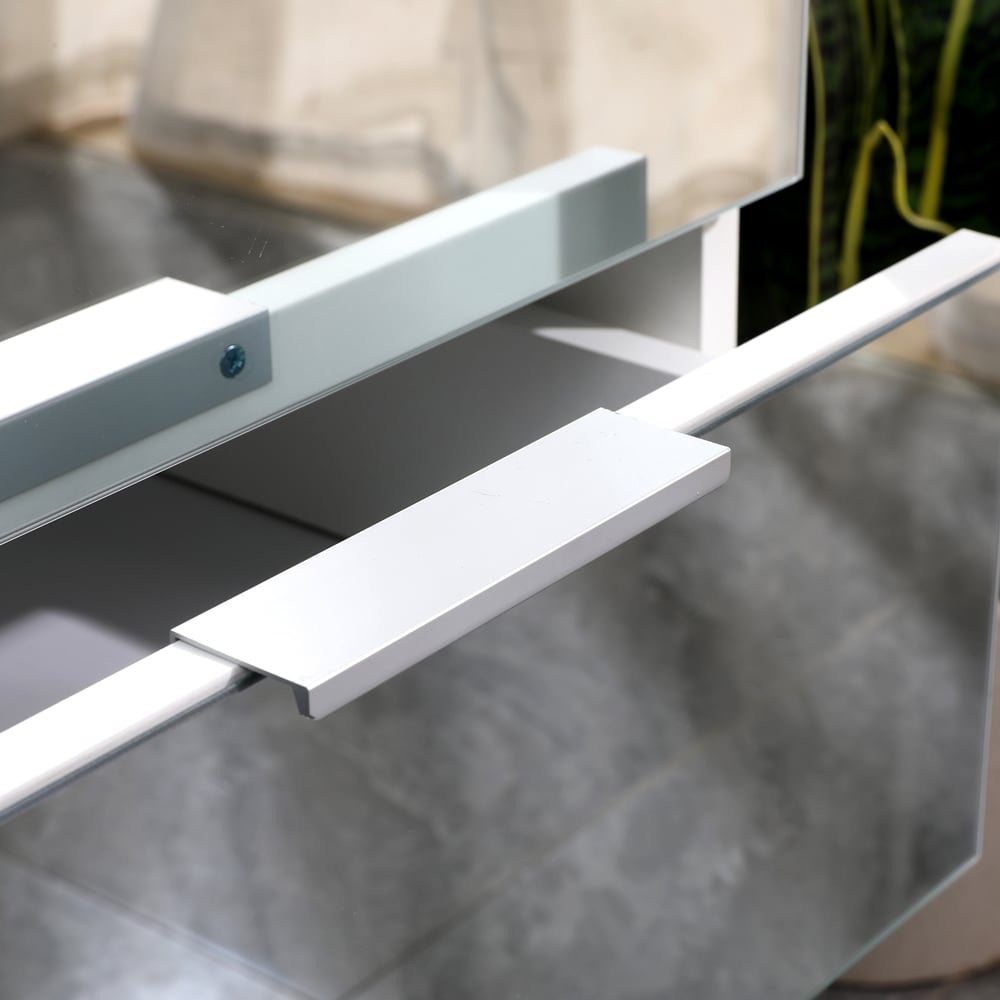 Elevate your bedroom's style and functionality with this chic bedside table. Its sleek matte white finish and mirrored drawer fronts create a glamorous focal point, reflecting light and enhancing your existing décor. Perfect for smaller spaces, this compact design offers generous storage without overwhelming the room. Three roomy drawers neatly accommodate books, electronics, and other essentials, while the tabletop provides a convenient surface for everyday items. The sophisticated design complements a variety of interior styles, from minimalist modern to classic elegance. Crafted from durable chipboard and mirror for lasting use, this piece offers a practical and stylish storage solution. The mirrored detailing adds a touch of luxury, seamlessly blending form and function. A truly versatile and high-quality addition to any bedroom. Dimensions: W40 × D35 × H58 cm. Assembly required; flat-packed in two boxes with detailed instructions.