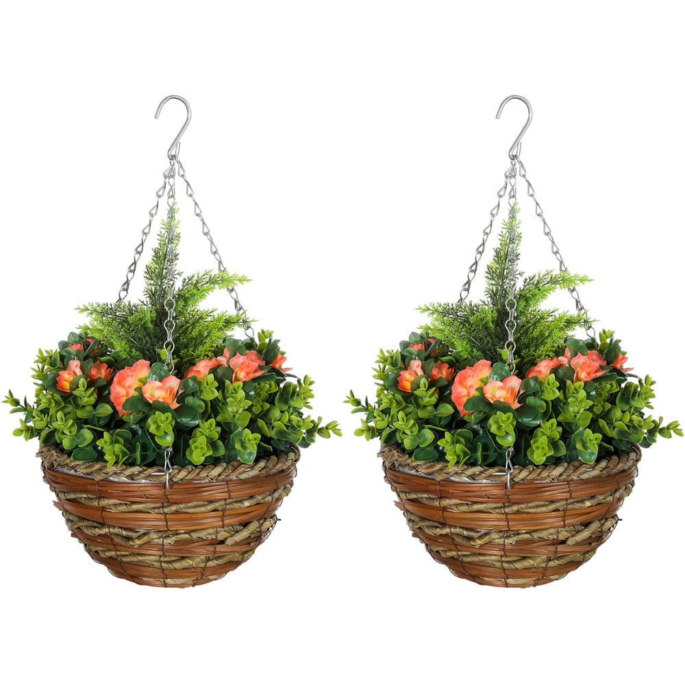 Portland Set of 2 Orange Lisianthus Artificial Faux Flower in Wicker Hanging Basket