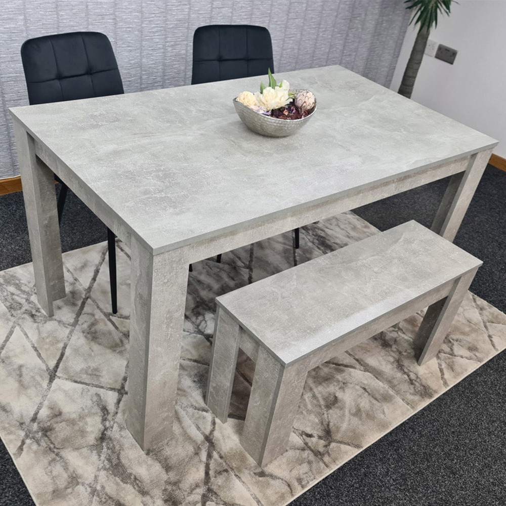 The accompanying bench, crafted from quality MDF with a matching stone grey effect and grey colour laminated finish, measures L90 x W30 x H45 cm. Assembly is made simple with the aid of clear, easy-to-follow instructions.