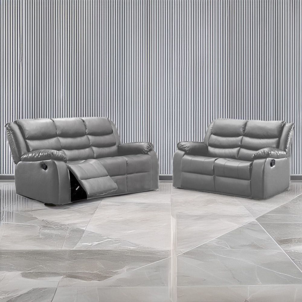 Sink into relaxation with this reclining sofa suite, featuring a 3-seater and 2-seater, both upholstered in premium PU leather. Designed with your comfort in mind, this suite boasts luxuriously padded arms and a manual, three-position reclining function, allowing you to find your perfect lounging position with ease.