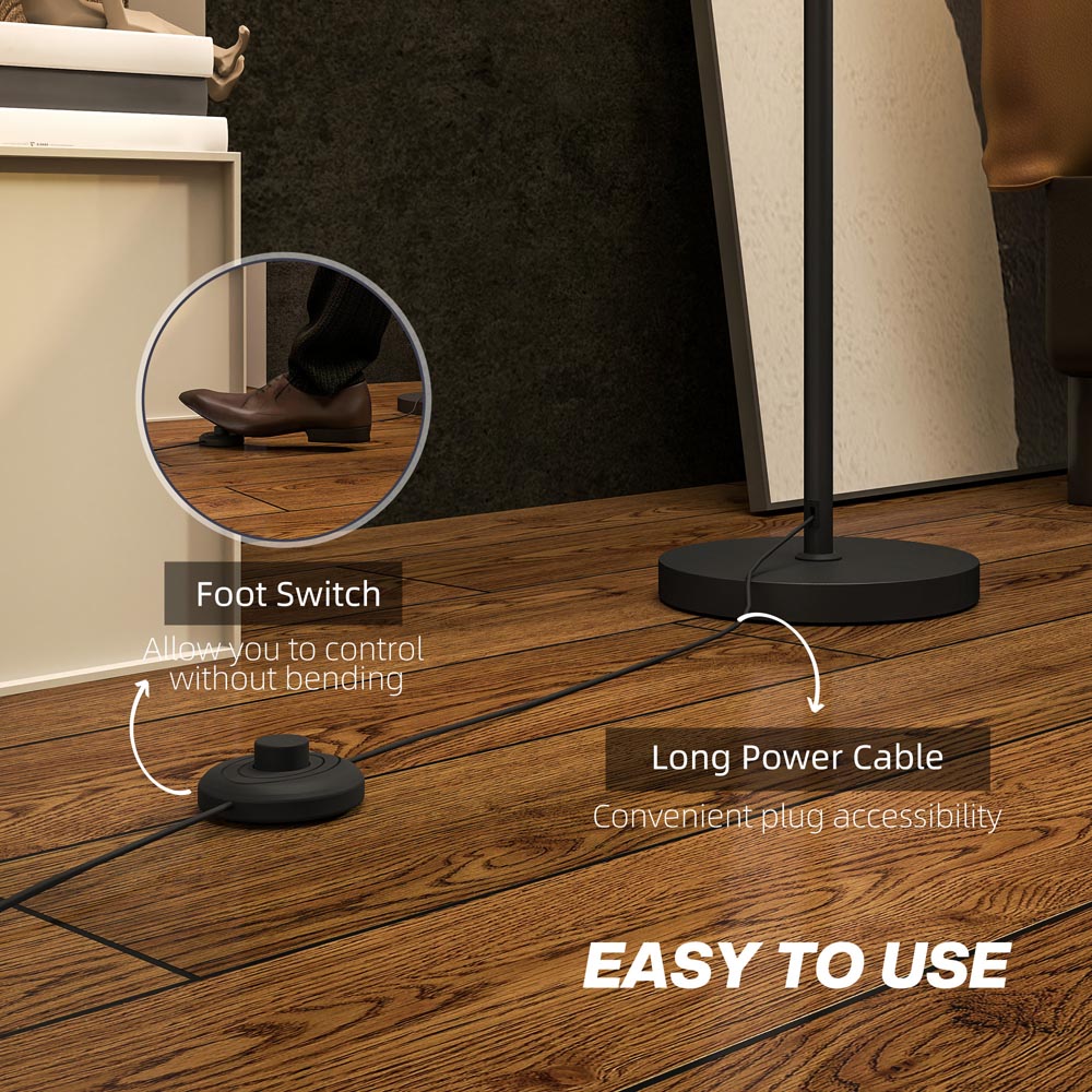 Create a warm and inviting atmosphere in your home with the Portland White Linen Shade Floor Lamp with Foot Switch. This tall standing lamp pairs a clean metal pole with a classic linen lampshade, offering soft ambient lighting that blends effortlessly into any living room, bedroom, or office. Its subtle design adds elegance without overwhelming your decor, making it an ideal fit for both modern and traditional spaces. Compatible with both LED and halogen bulbs, this standard lamp allows you to tailor your light source to suit your mood and preferences. A foot switch on the power cord lets you turn the lamp on or off without bending down. Setup is quick and tool-free. Just twist the poles together, secure them to the sturdy base, and wrap the rolled-up linen lampshade around the frame.