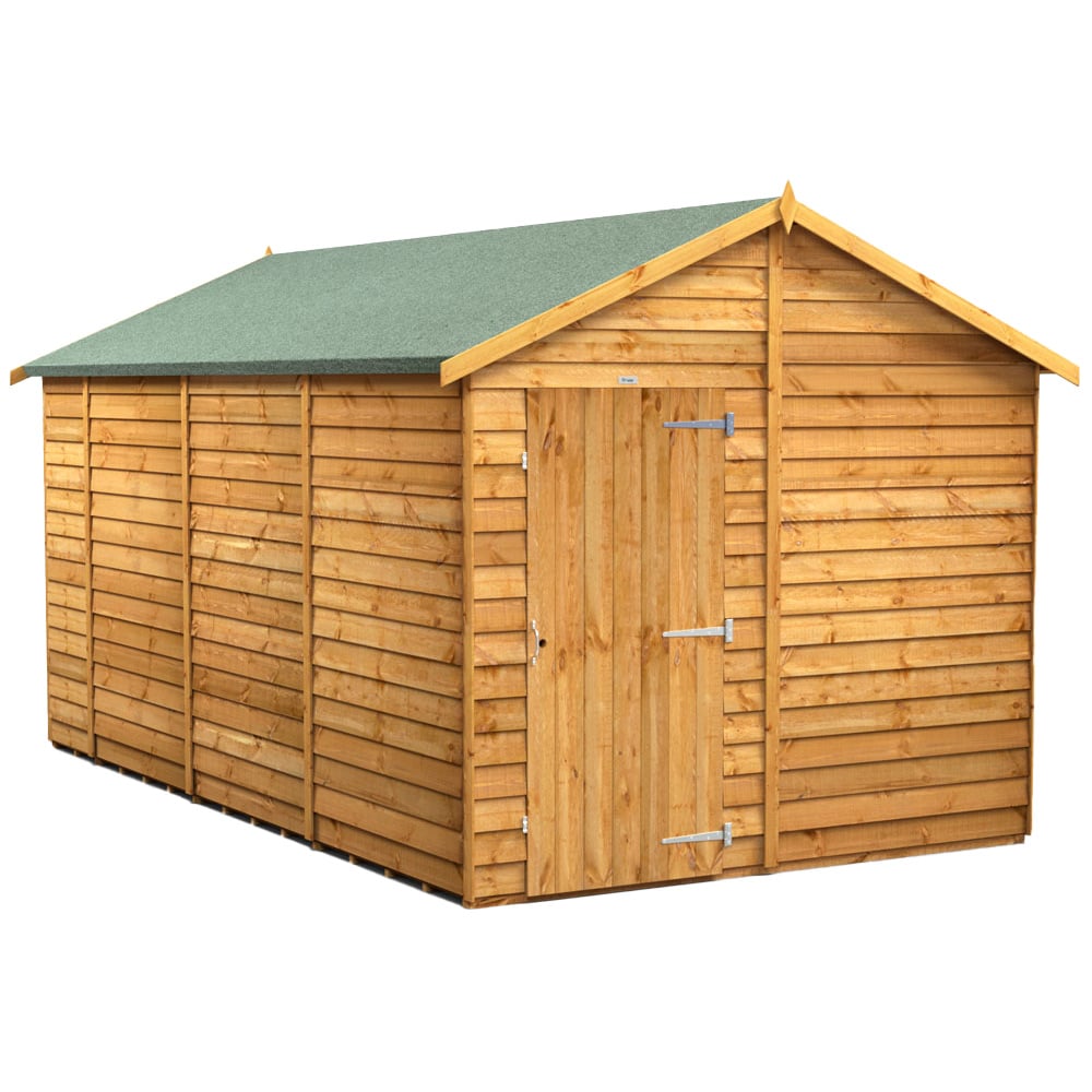 This robust 14 x 8ft overlap apex windowless garden shed offers a premium storage solution. Enjoy the flexibility of a customizable door position – place it on any side, wherever suits you best during assembly. Crafted from high-grade timber with rustic cladding, this modular shed is built to last. A special wood preservative, enhanced with waxe, is deep-penetratingly applied during a dip-treatment process to protect the timber for a full year without the need for re-treatment.