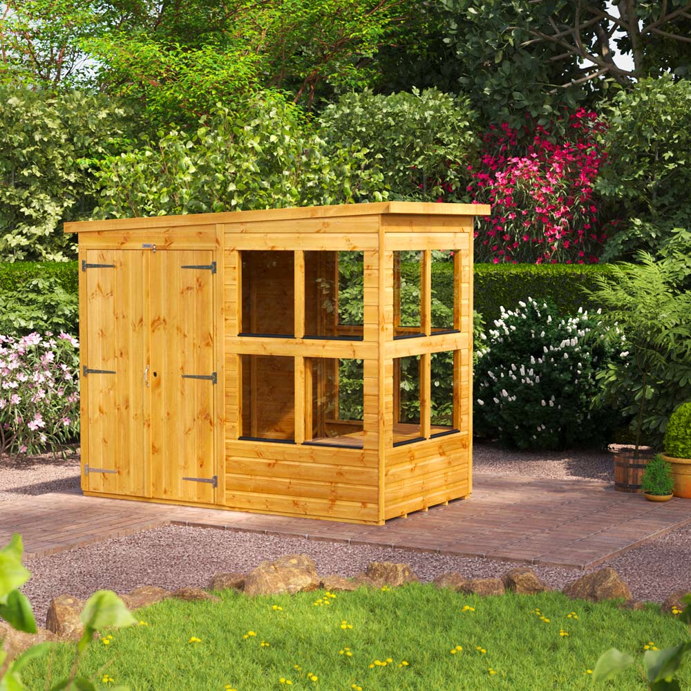 Enjoy the ultimate gardening experience with the Power 4 x 8ft Pent Double Door Potting Shed. This premium shed boasts high-grade timber, dip-treated with a special waxe-additive wood preserver for a year of protection against the elements – no need for re-treatment! The unique design lets you place the door and windows wherever you like during assembly, giving you complete freedom to customise your garden haven. Plus, it comes complete with two-tiered stageing units, perfectly sized to fit inside and provide ample storage for all your gardening essentials.
