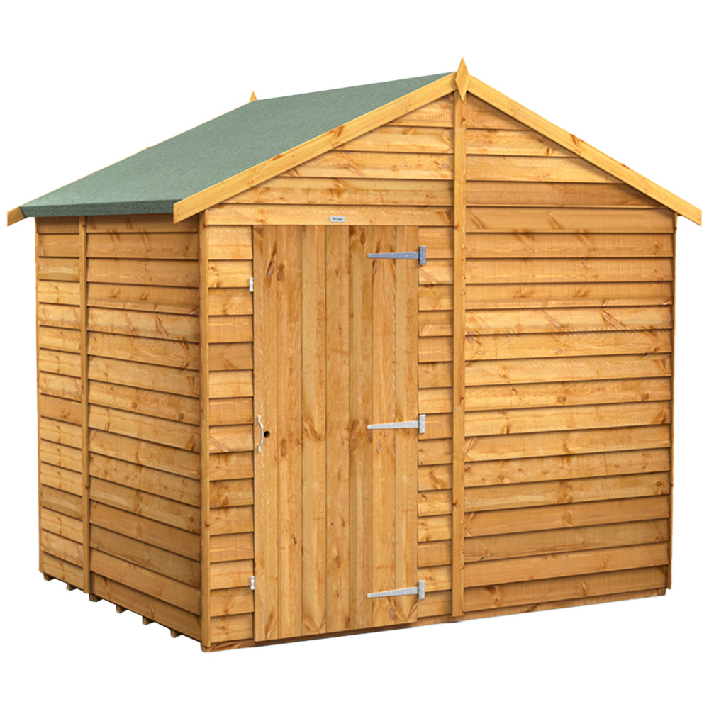This versatile 6 x 8ft overlap apex garden shed provides a premium storage solution. The modular design, featuring rustic cladding and high-grade timber, allows for easy self-assembly. You can install the door on any side, offering complete placement flexibility. Each component is dip-treated in a special wood preservative with waxe, providing a full year of protection before needing re-treatment.