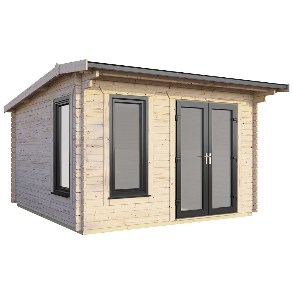 Enhance your garden with the Power Sheds 12 x 10ft Right Door Apex Log Cabin, a blend of practicality and stylish design for your outdoor area. Constructed with robust 44mm thick, high-grade timber walls, this cabin ensures lasting durability and strength. Anthracite grey uPVC double doors and 'Tilt and Turn' opening windows offer both security and excellent insulation. Security is further enhanced by toughened double glazing and a 5-point locking mechanism.