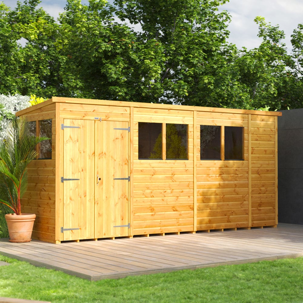 Power Sheds 14 x 4ft Double Door Pent Wooden Shed
