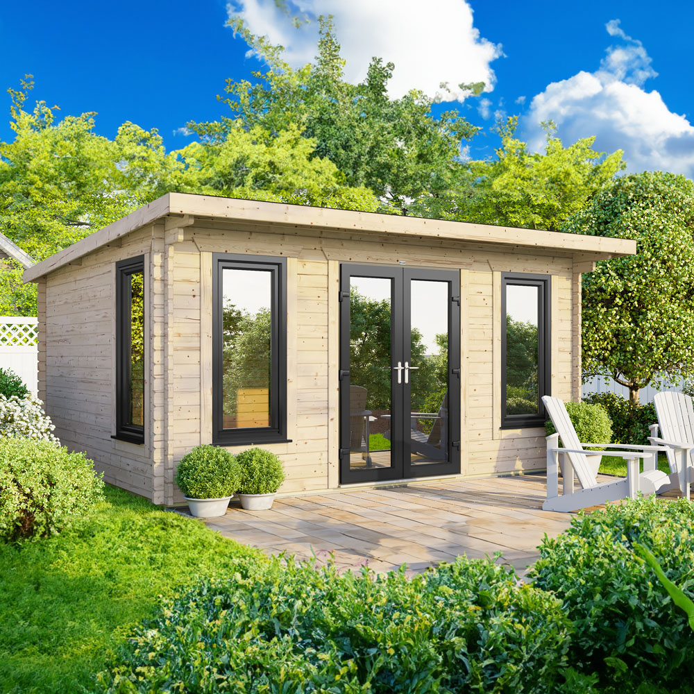 An excellent addition to any outdoor space, the Power Sheds 16 x 10ft Centre Door Pent Log Cabin is constructed with robust 44mm thick, high-grade timber walls, ensuring lasting durability and strength. This cabin features anthracite grey uPVC double doors and 'Tilt and Turn' opening windows, providing both security and insulation. For enhanced safety, it includes toughened double glazing and a 5-point locking mechanism. The roof benefits from a 50-year life expectancy, thanks to its EPDM rubber roofing system and gutter edge drip plate, offering long-lasting protection from the elements. Designed to remain under 2.5m in height, it typically bypasses most planning permission restrictions. The doors also feature 'easy access' aluminium low threshold sills for convenient entry and exit, while the Burford-style skirting adds an elegant touch to the design. Designed for straightforward self-assembly, this cabin is easily assembled.