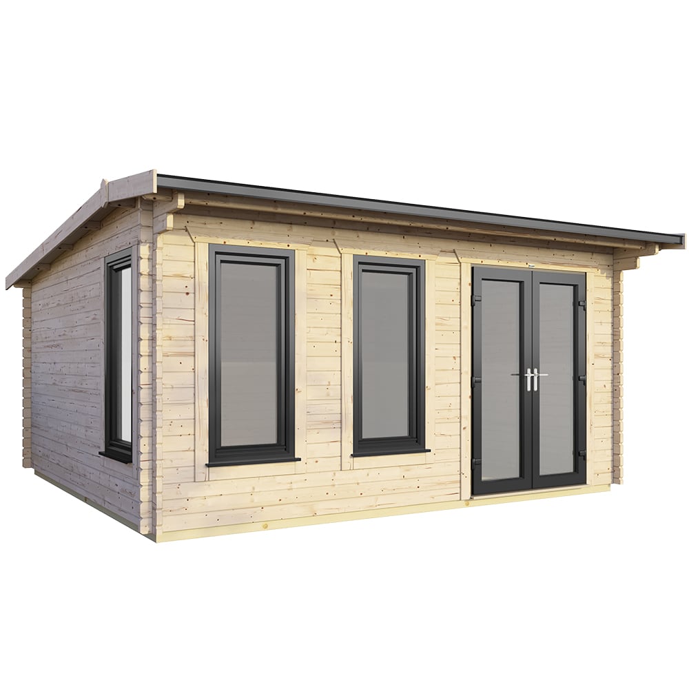 Enhance your garden with the Power Sheds 16 x 12ft Right Door Apex Log Cabin, a fusion of practicality and elegance. Crafted with robust 44mm thick, high-grade timber walls, this cabin offers exceptional durability and strength for years to come. Benefit from uPVC double doors and anthracite grey 'Tilt and Turn' opening windows, providing enhanced security and insulation. Safety is further assured with toughened double glazing and a 5-point locking mechanism.