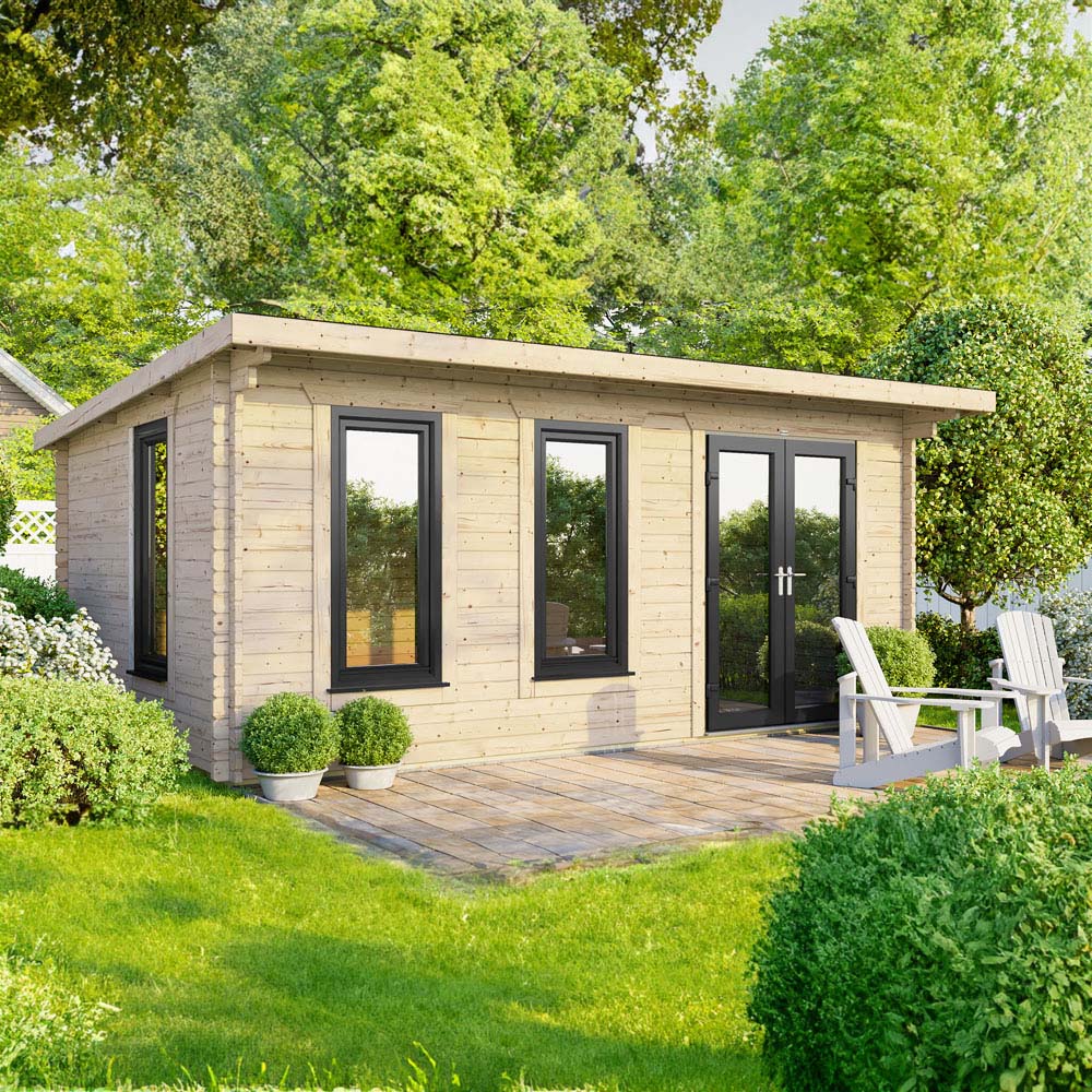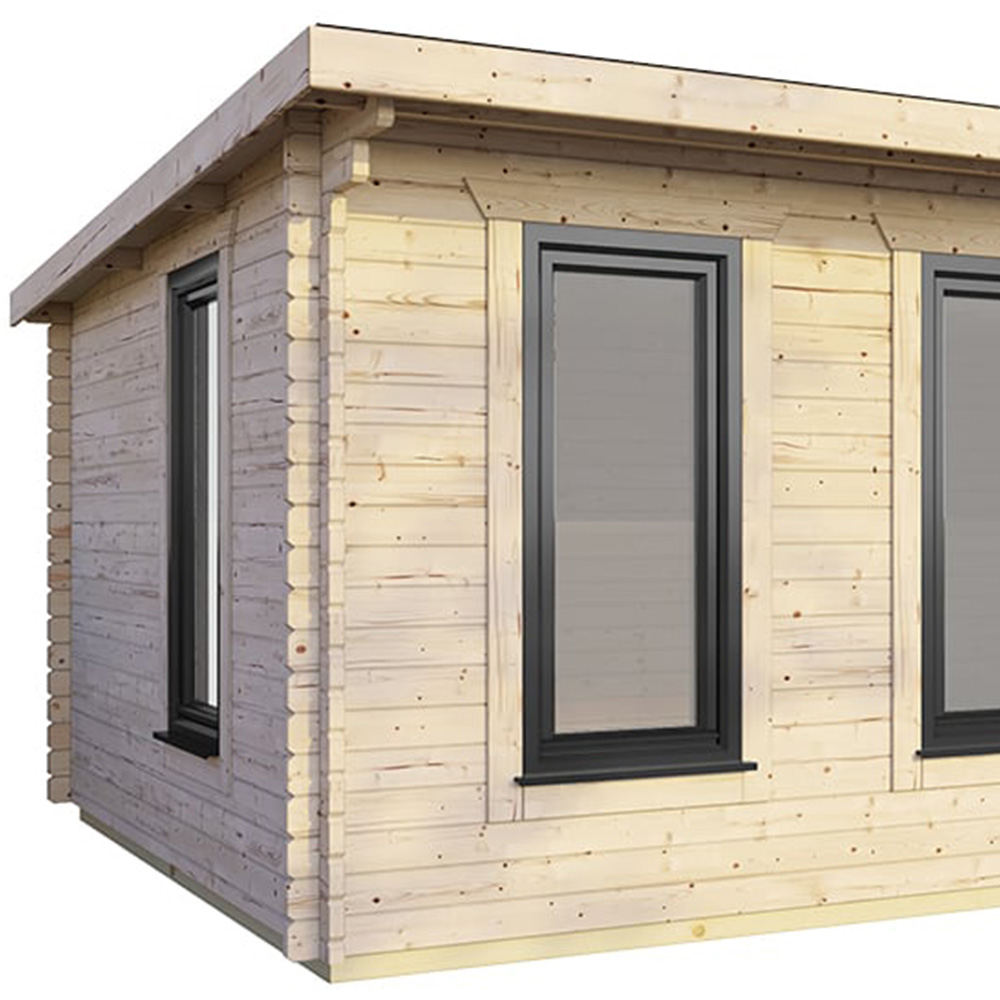 A superb addition to any outdoor space, this Power Sheds 18 x 10ft Right Door Pent Log Cabin is crafted with 44mm thick, high-grade timber walls for lasting durability and strength. The cabin features anthracite grey uPVC double doors and 'Tilt and Turn' opening windows, offering both security and insulation. Toughened double glazing and a 5-point locking mechanism further enhance the cabin's security. With a 50-year life expectancy, the roof features an EPDM rubber roofing system and gutter edge drip plate for long-lasting protection from the elements. Designed to be under 2.5m in height, it bypasses most planning permission restrictions. The doors include 'easy access' aluminium low threshold sills for convenient entry and exit, and the Burford-style skirting adds an elegant touch to the cabin's design. Designed for straightforward self-assembly, making it easily accessible.