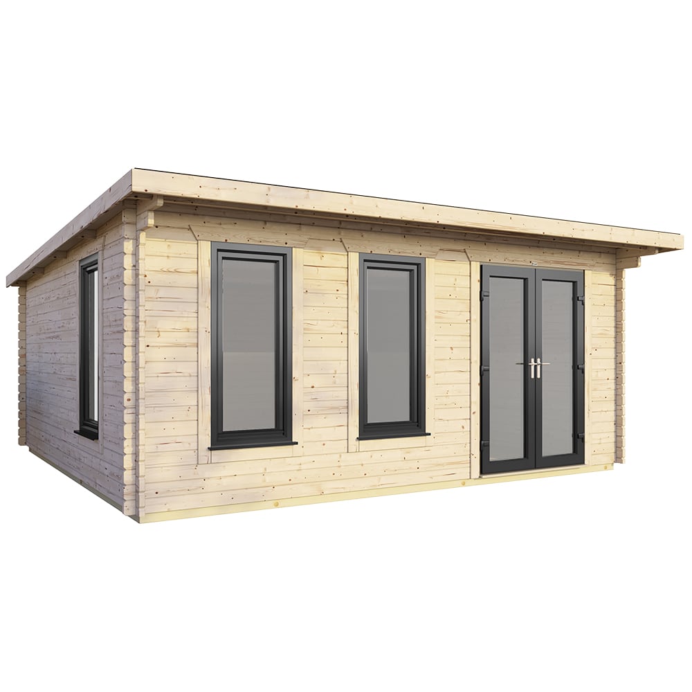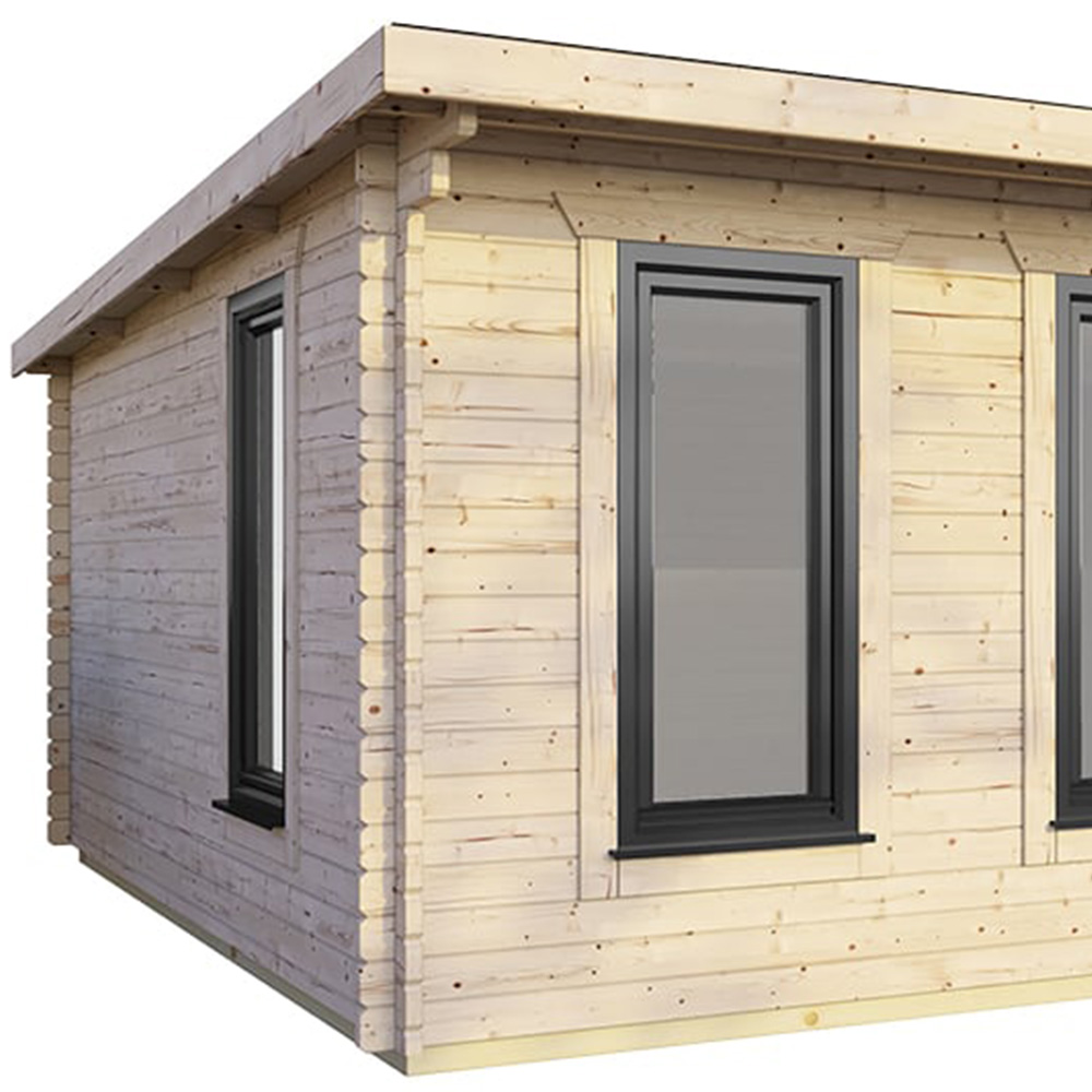 Crafted with 44mm thick, high-grade timber walls, the Power Sheds 18 x 14ft Right Door Pent Log Cabin provides a durable and stylish addition to your outdoor space. Featuring anthracite grey uPVC double doors and 'Tilt and Turn' opening windows, the cabin offers both security and insulation. For enhanced safety, it includes toughened double glazing and a 5-point locking mechanism. The roof benefits from a 50-year life expectancy, thanks to the EPDM rubber roofing system and gutter edge drip plate, ensuring long-lasting protection from the elements. Designed to remain under 2.5m in height, it bypasses most planning permission restrictions. The 'easy access' aluminium low threshold sills on the doors add convenience, while the Burford-style skirting brings a touch of elegance to the design. Furthermore, the cabin is designed for straightforward self-assembly, making it easily accessible.
