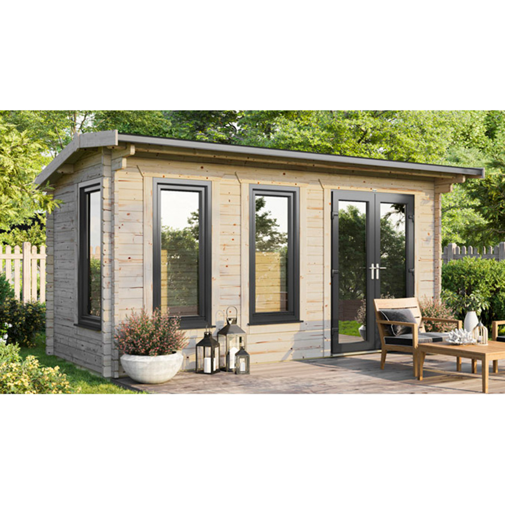 Elevate your garden with the Power Sheds 18 x 8ft Right Door Apex Log Cabin, a fusion of practicality and style. Constructed with robust 44mm thick, high-grade timber walls, this cabin is built to last, ensuring durability and strength. Anthracite grey uPVC double doors and 'Tilt and Turn' opening windows not only provide a contemporary look but also ensure excellent security and insulation.