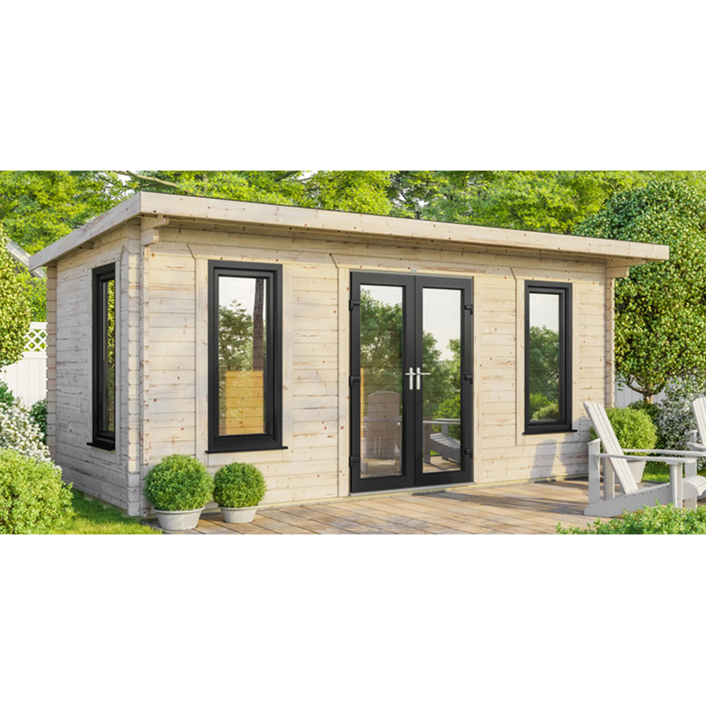 Crafted with robust 44mm thick, high-grade timber walls, the Power Sheds 20 x 10ft Centre Door Pent Log Cabin brings practicality and style to any outdoor space. Featuring anthracite grey uPVC double doors and 'Tilt and Turn' opening windows, this cabin offers both security and superior insulation. Toughened double glazing and a 5-point locking mechanism provide enhanced safety.