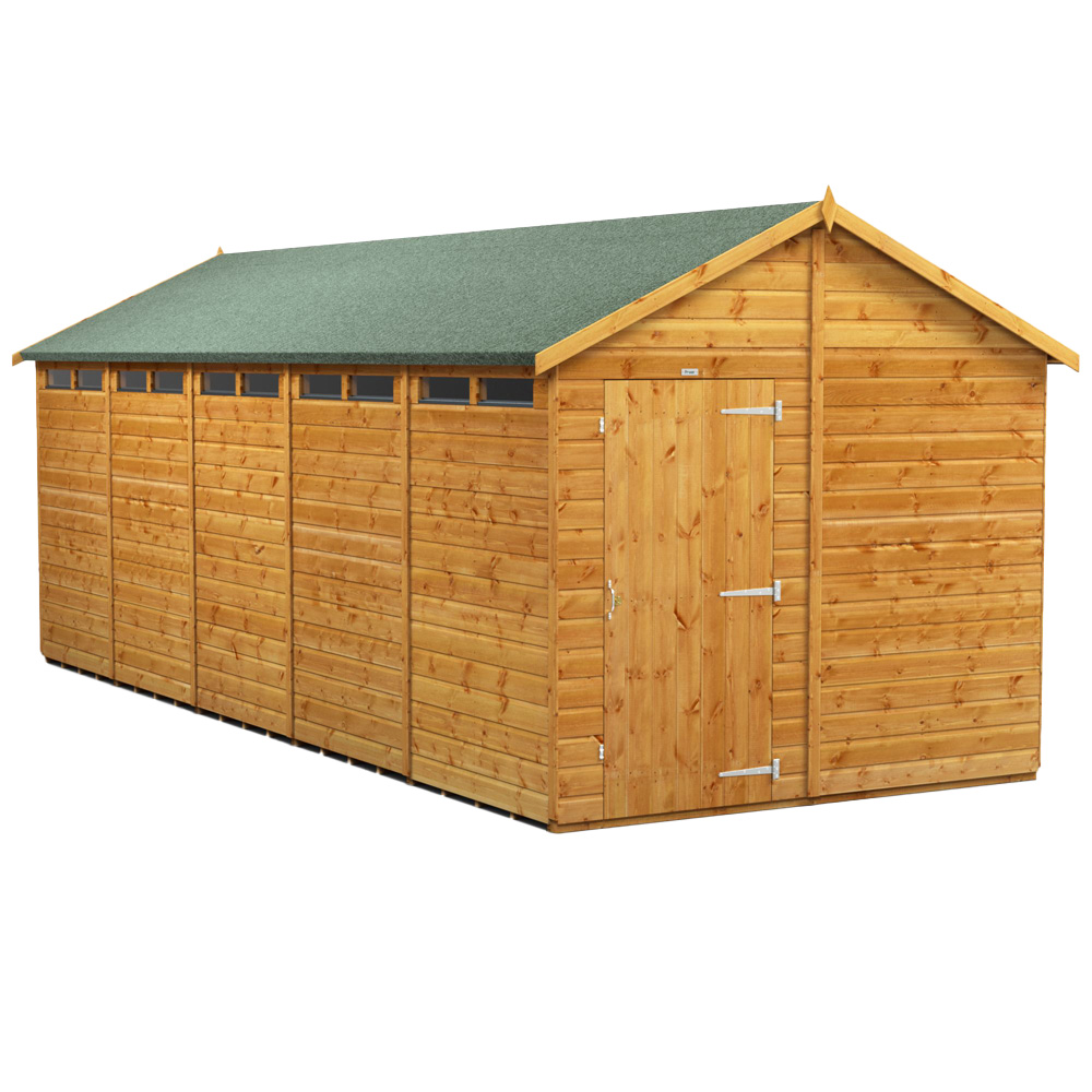 This robust 20 x 8ft Apex shed offers a premium storage solution for your garden. Its modular design allows for complete customisation; position the door and windows wherever you choose during assembly, offering unparalleled flexibility. Crafted from high-grade Scandinavian timber, this shed boasts exceptional durability. Each component undergoes a thorough dip treatment with a special wood preserver containing waxe, providing a full year of protection before requiring re-treatment. This comprehensive treatment, achieved by submerging each piece, ensures complete coverage and lasting weather resistance.