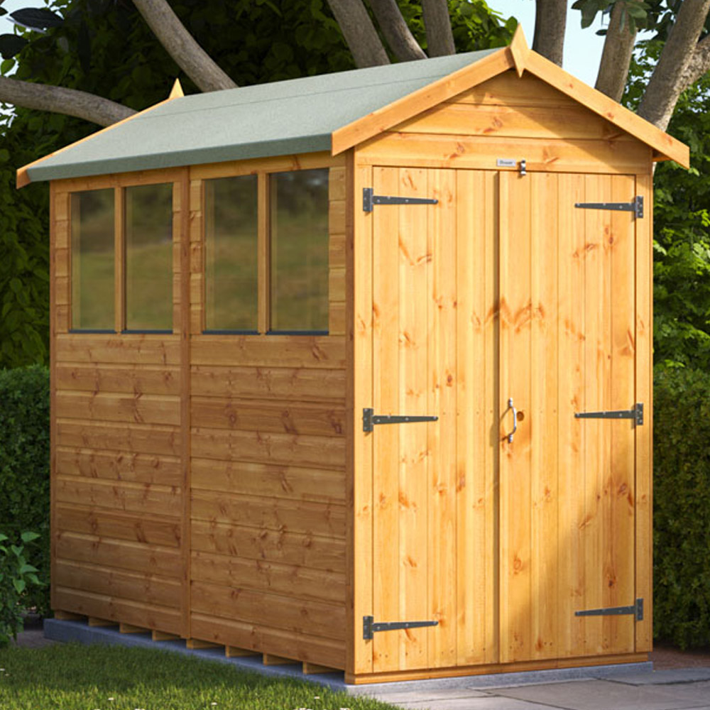 Power Sheds 8 x 4ft Double Door Apex Wooden Shed with Window