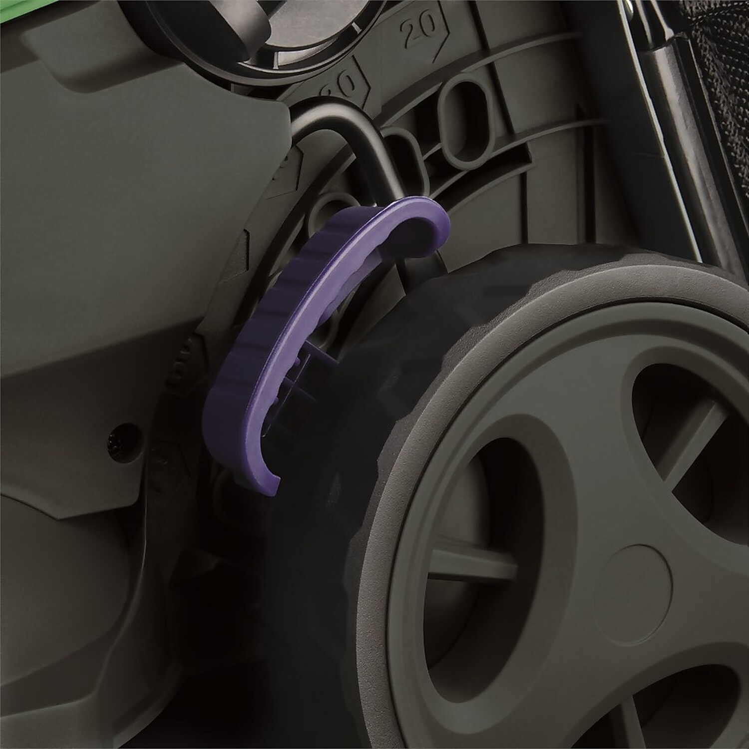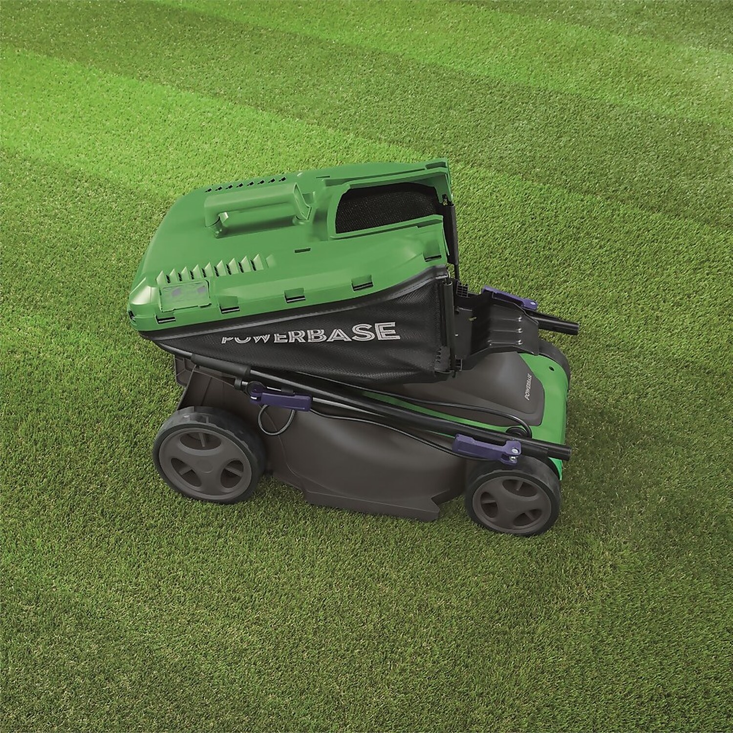 Achieve a beautifully manicured lawn with this Electric Lawn Mower, designed for a professional finish. A standout feature is the rear roller, which leaves your lawn with a crisp striped effect and helps prevent scalping. The cutting height is easily adjustable with a single lever—no tools required—ranging from 70mm (ideal for the first cut of the year) to 20mm in 10mm increments, offering a total of 6 height settings for your desired lawn finish. This mower includes a mulching plug, which finely cuts the grass and returns it to the lawn, adding valuable nutrients for healthier growth. Using the mulching plug eliminates the need to stop and empty the grass bag when mowing larger areas. If you prefer to collect clippings, simply remove the plug and use the collection bag as usual. Mulching is especially beneficial for the first few cuts of the season. All Powerbase electric rotary lawnmowers are equipped with patented Turbo Drive and Air-Lift technologies. Turbo Drive ensures consistent torque for an even cut, even through thicker grass, while Air-Lift, inspired by wind tunnel testing and featuring a winged carbon steel blade, efficiently directs clippings to the back of the collection bag for optimal grass collection. The mower also features a patented Ready-bag that’s easy to attach right out of the box. When not in use, the bag collapses flat for convenient, space-saving storage.