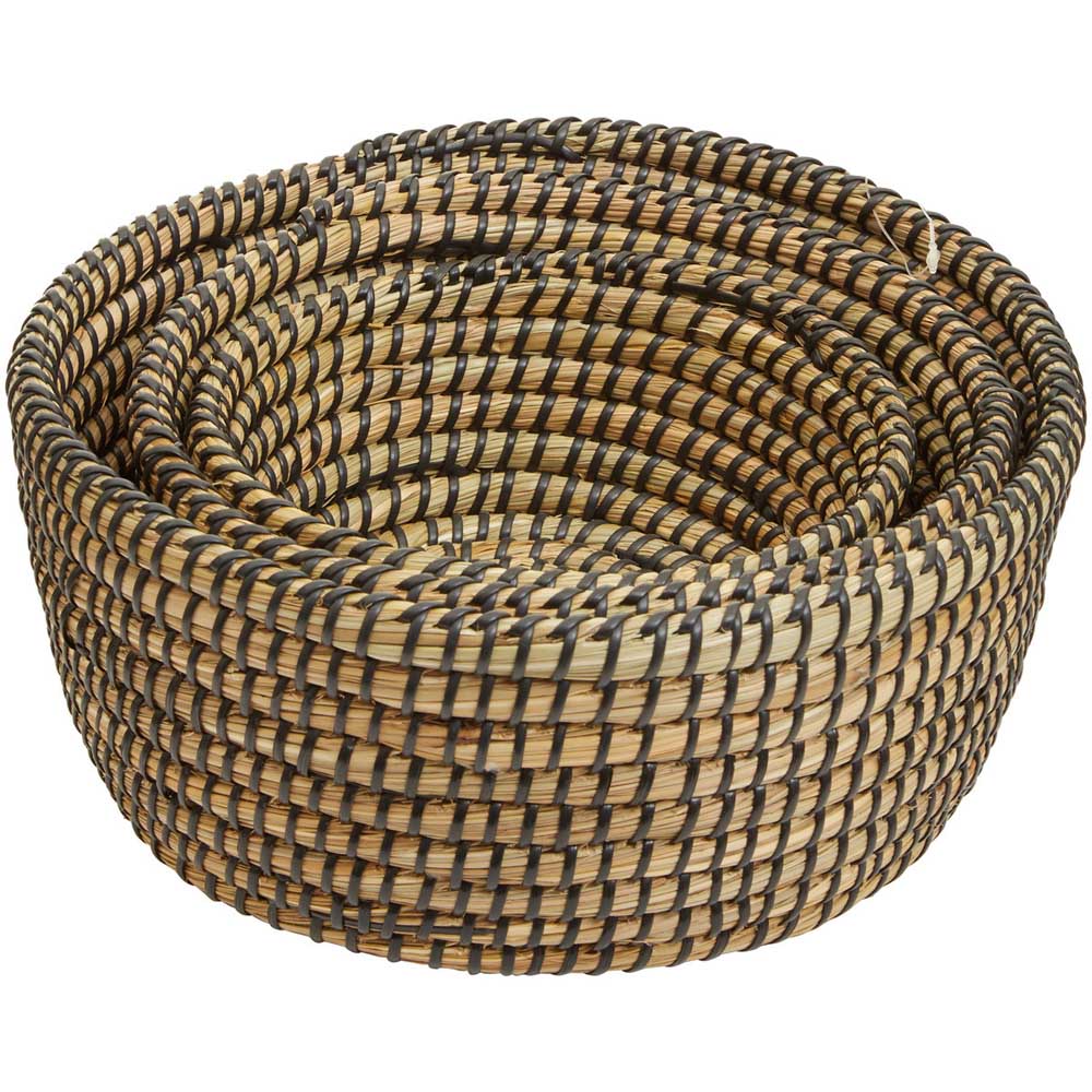 Premier Housewares Black Detail Round Straw Basket 3 Pack