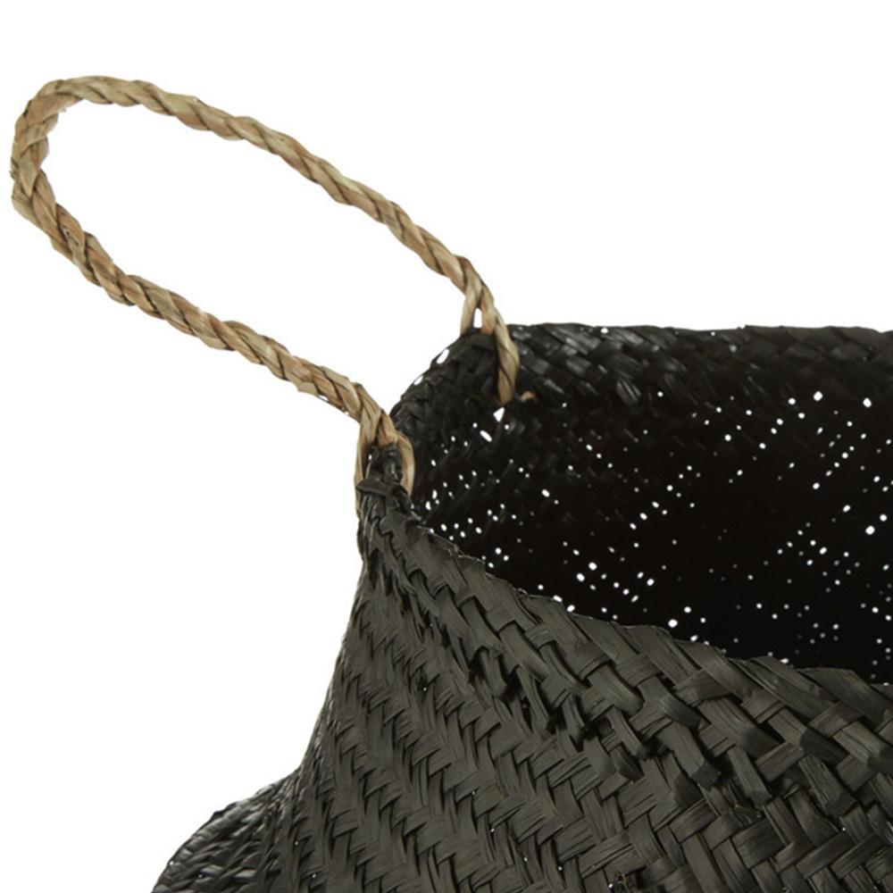 This stylish Premier Housewares Medium Seagrass Basket in black and silver offers both storage and sophisticated style. Sleek black beautifully complements the neutral seagrass loop handles. Reflective silver sequins on the base add a decorative touch, while the woven pattern makes it a versatile addition to many interior design schemes.