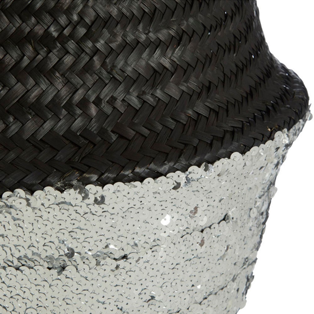 Premier Housewares Black and Silver Sequin Medium Seagrass Basket