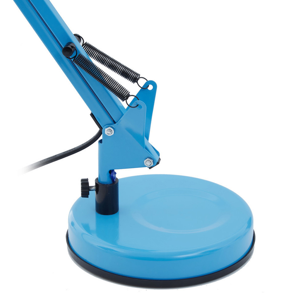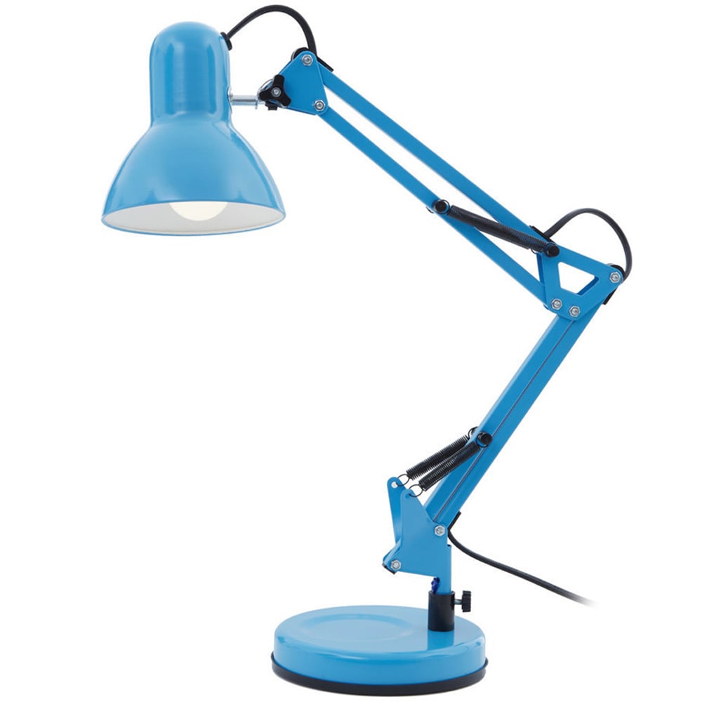 Add a touch of classic style to your workspace with this desk lamp. Its sturdy metal construction and vibrant blue finish offer a pop of colour, while the fully adjustable arm and head ensure the light is always exactly where you need it. Perfect for focused tasks, studying, or reading, this lamp provides optimal lighting for enhanced productivity and comfort. The small screw-in base allows for easy height adjustment, making it a versatile and convenient addition to any desk or table. Requires 1 x E27 60W bulb (not included).