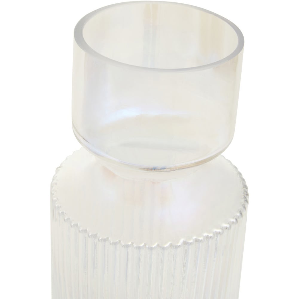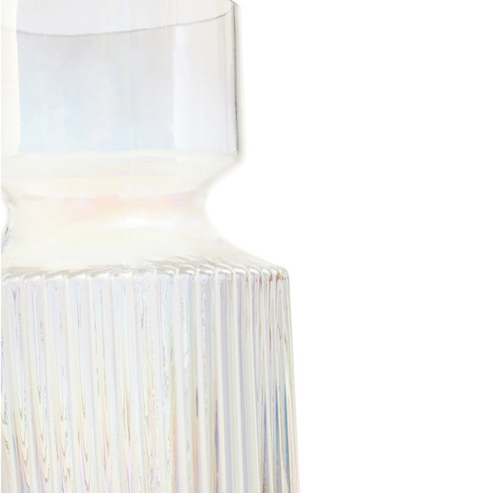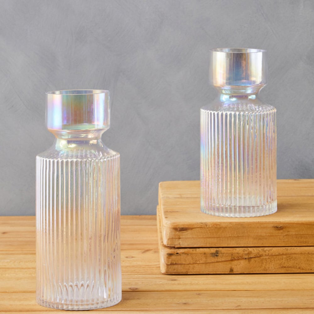 Make a statement with the Breamo Small Vase. This isn't just a vase, it's a stylish centrepiece designed to elevate your home's aesthetic. Crafted from sturdy glass, its textured surface boasts a captivating blend of fluted elements, combining straight lines and semi-circle patterns for a look that complements both modern and eccentric interiors. The iridescent finish adds a touch of brilliance, perfectly showcasing bright floral displays while enhancing the ambiance of any room.