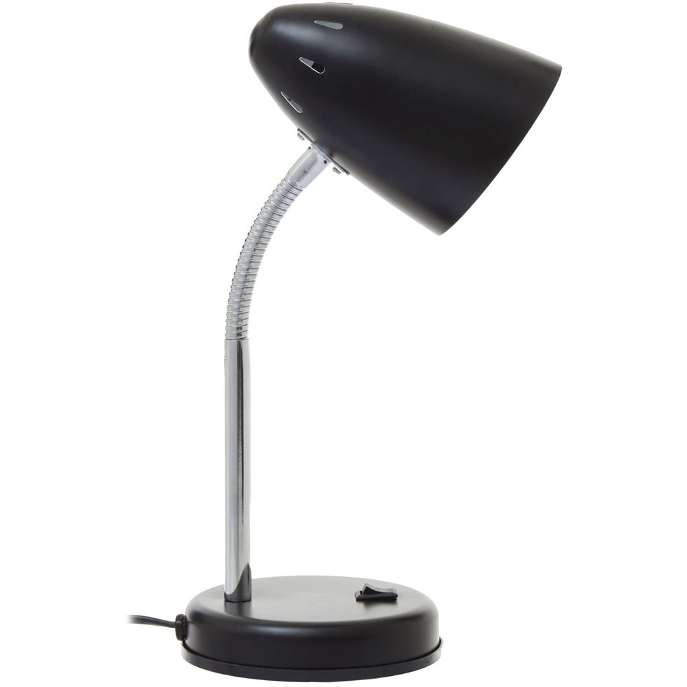 Elevate your workspace with this stylish and functional desk lamp. Its flexible chrome gooseneck lets you precisely adjust the light, while the matte black shade's shape and finish add a contemporary touch to any desk. The sturdy base ensures stability, and the lamp's design provides both adjustable lighting and a decorative accent.