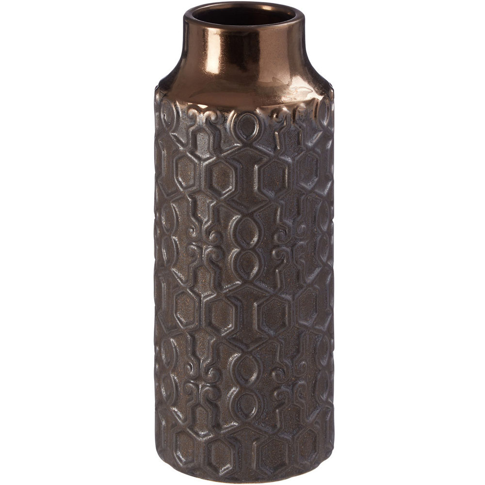 Elevate your living space. This small ceramic vase from Premier Housewares makes a statement with its handcrafted design and robust ceramic construction. A subtle glazed finish enhances the textured surface, showcasing a sophisticated gold and metallic grey palette. Its geometric accents add a touch of modern elegance to any room.