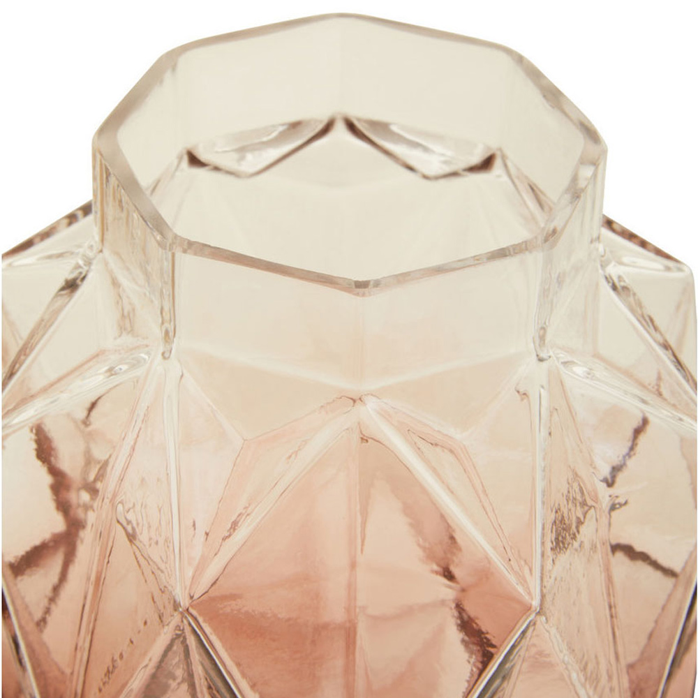 Add a touch of chic to your home with this small Brice Glass Vase from Premier Housewares. Expertly handcrafted with angular, multifaceted edges and a captivating pink ombre finish, its gradient effect beautifully complements the diamond-cut detail. Perfect for showcasing fresh or faux flowers, this vase is a charming decorative accent.