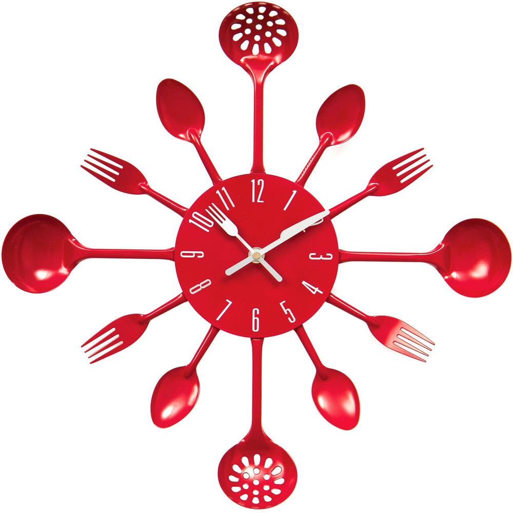 Premier Housewares Red Cutlery Metal Wall Clock 43cm