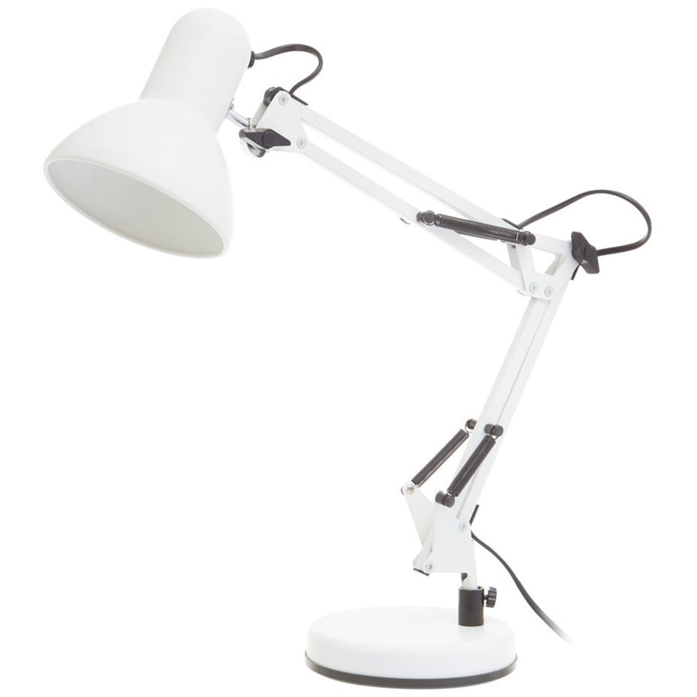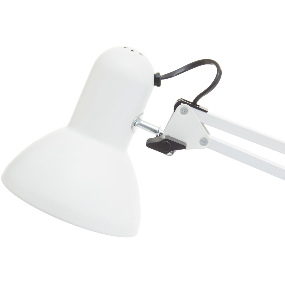Enhance your workspace with this stylish matte white desk lamp. Its sturdy iron base and classically shaped shade offer elegance and functionality. The adjustable scissor neck boom arm lets you position the light precisely where you need it, adapting to your workspace requirements. The modern matte white finish complements any contemporary décor.