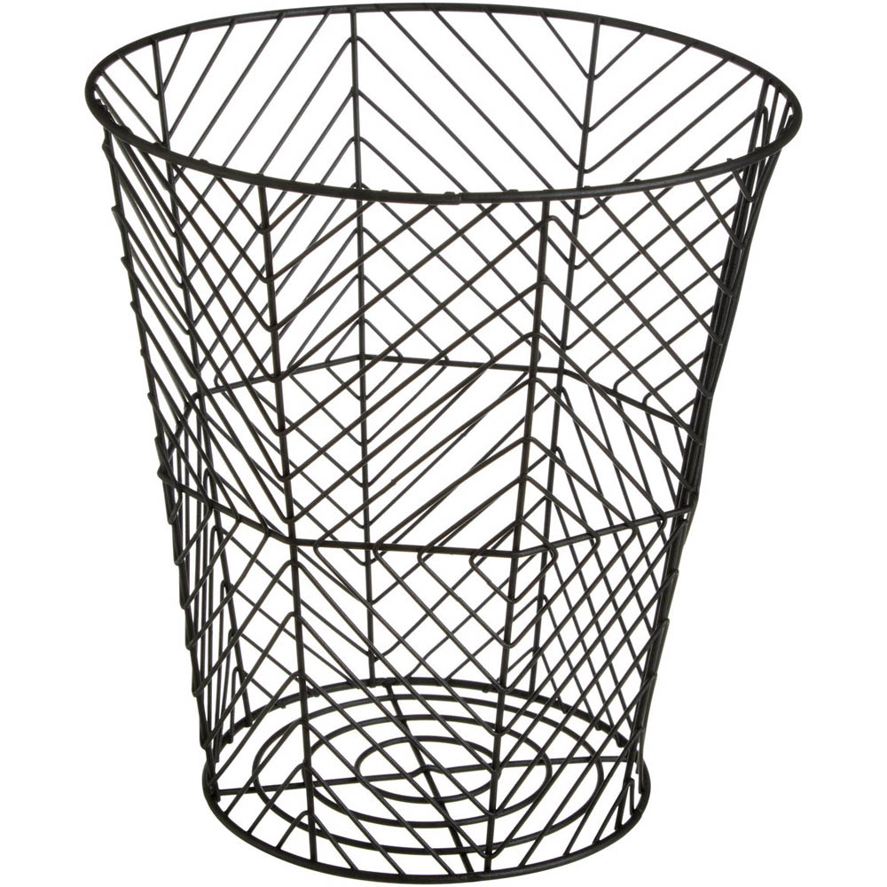 Enhance your home's style and organisation with the Premier Housewares Vertex Black Powder Coat Storage Basket. This geometric storage solution features a sleek, black powder-coated iron wireframe design. Its unique concentric circle base tapers elegantly to a wide rim, adding visual interest to any bedroom or home office. The durable powder-coated finish ensures lasting quality and a sophisticated look.