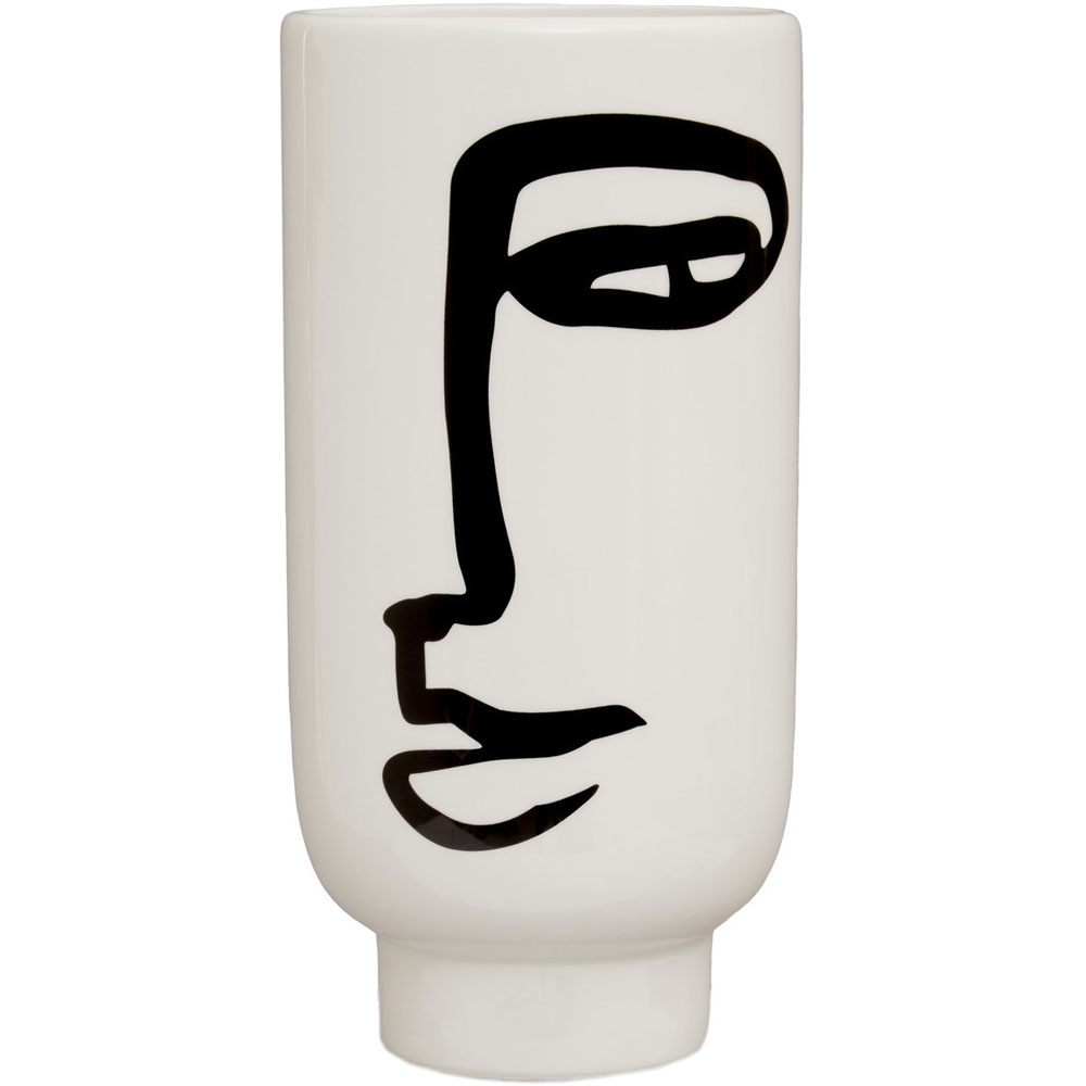 Elevate your décor with this Fabia Large Ceramic Vase. Its cylindrical form, crafted from ceramic and finished in clean white, provides a minimalist canvas. A vintage abstract face sketch adds an artistic touch, lending itself perfectly to modern and minimalist interiors. Use it as a striking standalone piece or as a sophisticated vessel for your favourite blooms.