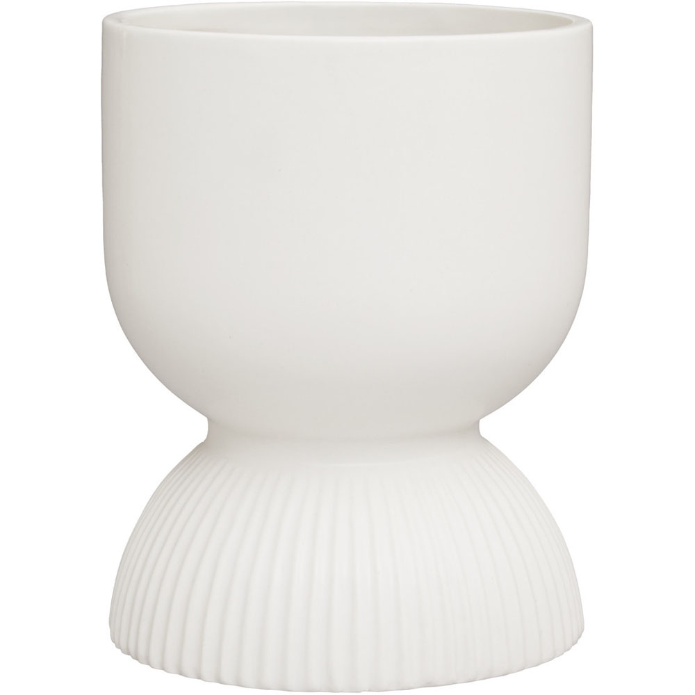 A charming medium-sized white ceramic planter, the Fia from Premier Housewares. Its tapered form, resting on a round, stable base, provides ample space for your plants. A sophisticated addition to any home.