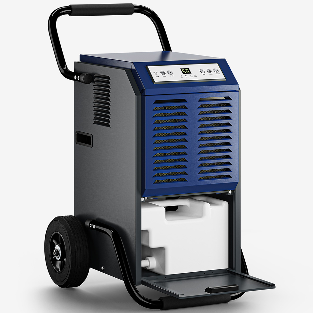 This heavy-duty dehumidifier conquers humidity in large spaces like warehouses, workshops, basements, and construction sites. Its powerful extraction removes up to 50 litres of moisture daily. An automatic humidity sensor intelligently adjusts the dehumidification level to maintain optimal conditions. The automatic defrost function ensures continuous operation even in cold environments. Convenient features such as a foam handle, large buttons, and sturdy wheels make it easy to use and transport, contributing to its long lifespan.