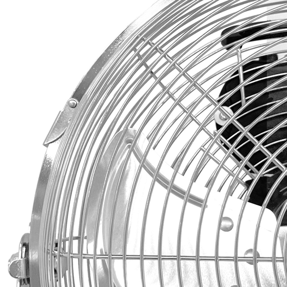 The Pro Breeze Chrome Gym Floor Fan delivers powerful cooling wherever you need it. This 12-inch fan boasts three speed settings (high, medium, and low) to customize your airflow. Its robust 50W motor and large 30cm fan head generate strong cooling winds, while the 160-degree adjustable head lets you direct the airflow precisely. Built for durability, this heavy-duty fan is perfect for gyms, homes, offices, warehouses, and industrial settings.