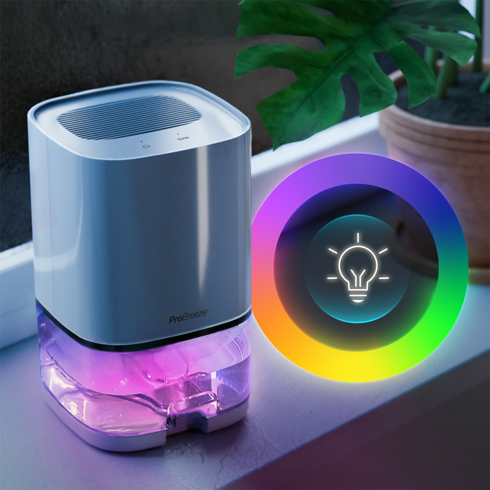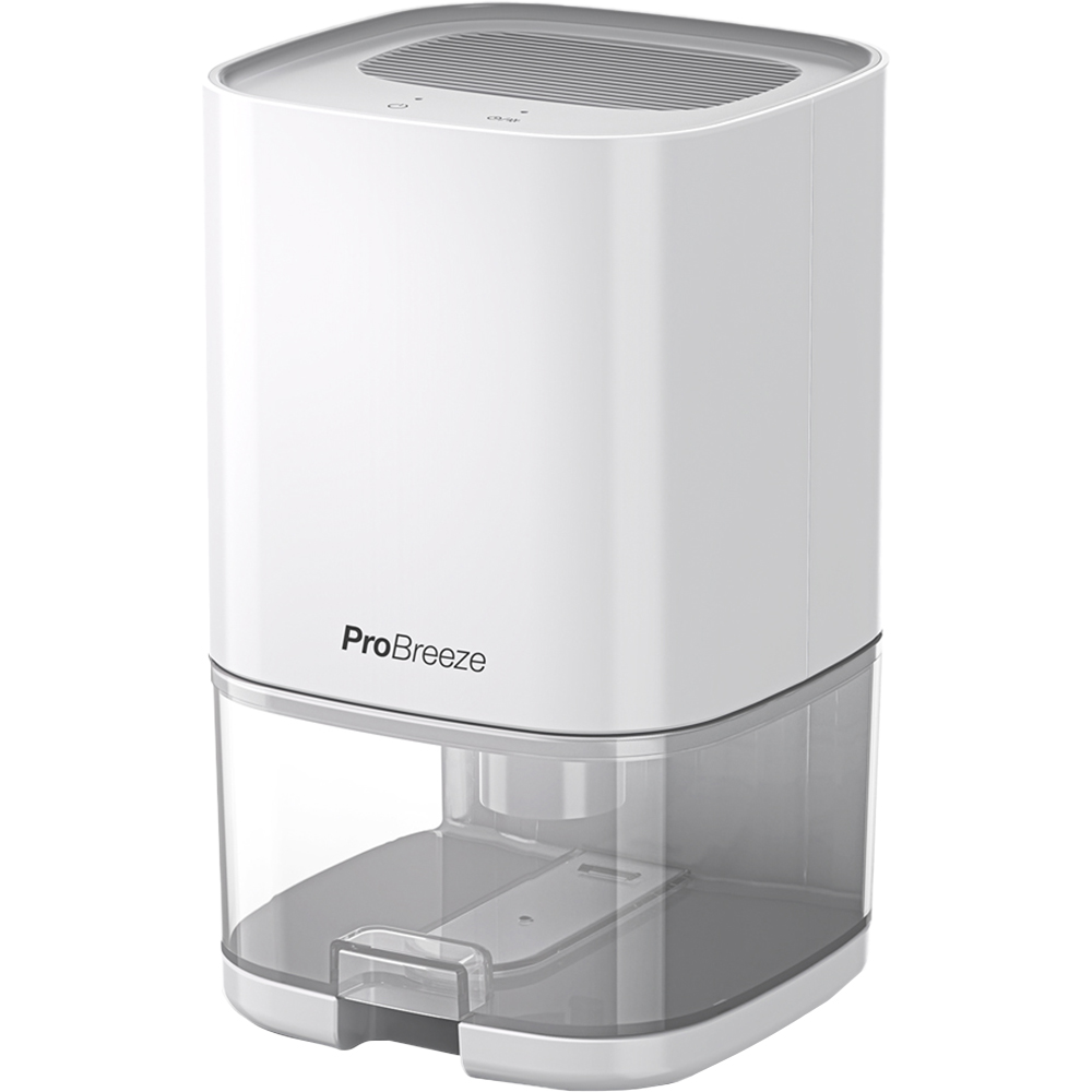 The Pro Breeze White Dehumidifier 1L banishes dampness and its related problems, such as mold and condensation. This quiet dehumidifier uses innovative Thermo-Electric Cooling Technology (Peltier) to remove up to 450ml of moisture daily from medium-sized rooms, garages, or bathrooms. Its one-litre tank, automatic shutoff, and full-tank indicator light offer worry-free operation. Enjoy energy savings with a running cost as low as 1p per hour. A programmable four-hour timer provides energy efficiency and is ideal for overnight use.