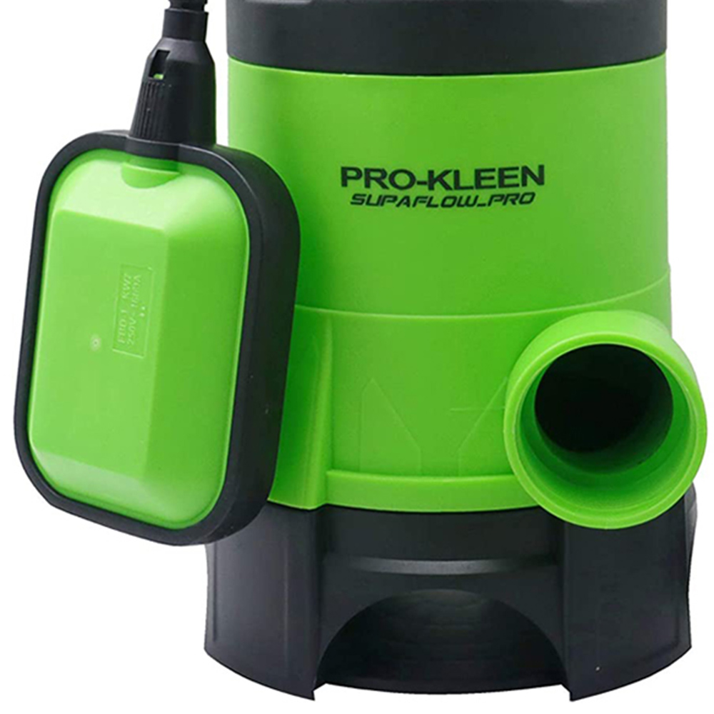 Drain water fast and safely with the Pro-Kleen 400W Submersible Pump. Ideal for homeowners and professionals, this high-performance pump tackles large-volume water removal quickly and reliably. Handling particles up to 35mm in size, it',s tough enough for dirty floodwater yet safe for clean water applications like pools, wells, and appliance leaks. Its impressive efficiency moves 8000L per hour while consuming minimal power. The automatic float switch activates the pump upon submersion, ensuring safe operation. With an IPX8 waterproof rating, it operates safely at depths up to 7m. A durable, full copper motor provides stability and extends the pump',s lifespan.