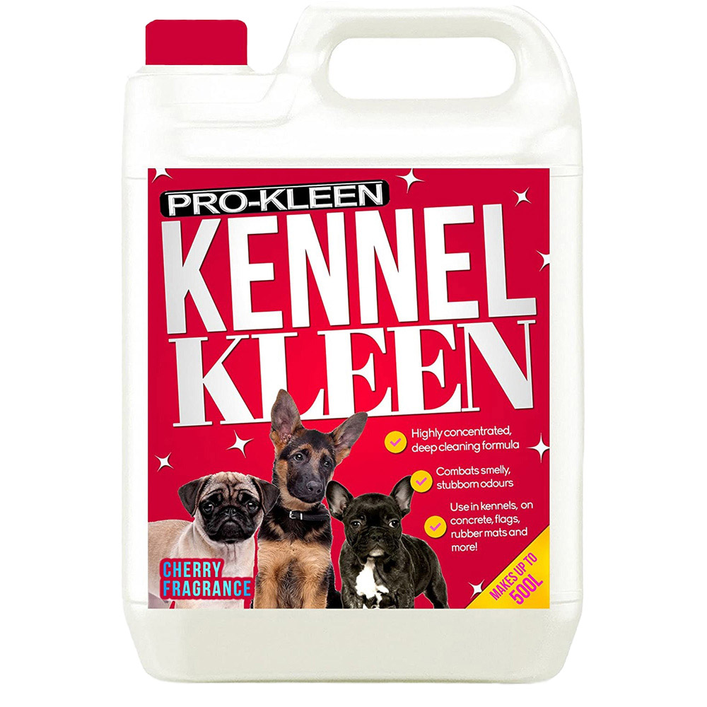 Keep your pet's space fresh and clean with Pro-Kleen Kennel Kleen Cleaner. This 2-in-1 solution effortlessly eliminates bacteria and stubborn odours, leaving behind a pleasant cherry fragrance. By removing germs and bacteria, you contribute to a healthier environment for your furry friend. Its highly concentrated formula isn't just for kennels, it's perfect for catteries, hutches, aviaries, patios, concrete, and all washable surfaces. Simply remove your pets before application and reintroduce them only after the area is completely dry. For deodourising, dilute one part cleaner to 100 parts water, for disinfecting, use a 1:20 ratio. Apply by mopping, spraying, or wiping, then rinse thoroughly for a sparkling clean finish. This 5L container provides long-lasting freshness and cleanliness.