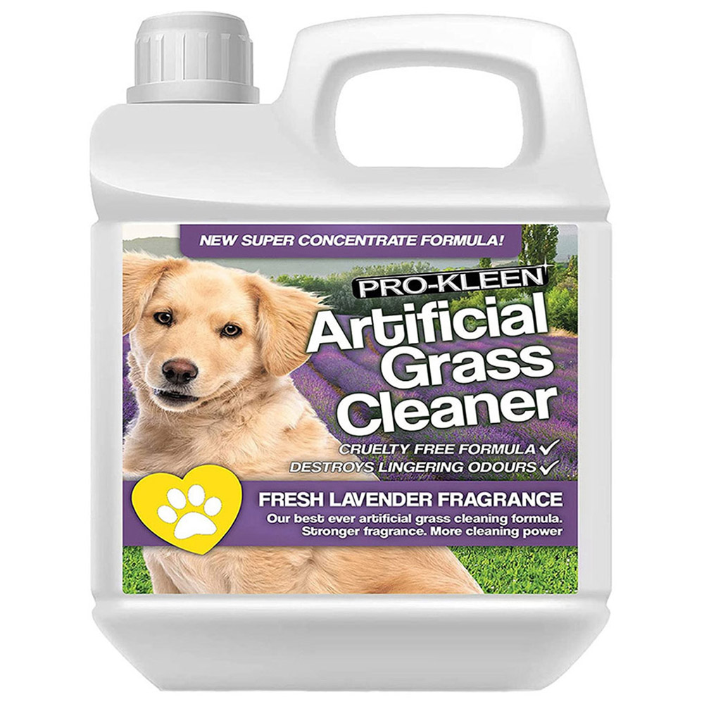 Pro-Kleen Artificial Grass Cleaner, with its Lavender Meadow fragrance, will keep your artificial grass looking and smelling its best. This powerful cleaner quickly removes stains and deodorises, eliminating pet urine odors and replacing them with a fresh-cut-grass scent. Safe for use around children and pets once the area is completely dry. Note: may be harmful to aquatic life. Apply with a watering can or pump sprayer at a 2:1 dilution, use neat and agitate with a brush for stubborn stains. 1L bottle.