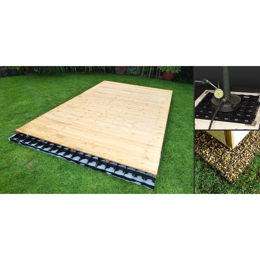 Provide a firm and long-lasting base for your garden building with this ProBase 7 x 4ft Garden Shed Base Kit with 15 Grids. This kit consists of robust, heavy-duty grids made from 100% recycled plastic. It also comes with a heavy-duty, weed-resistant membrane that is pre-cut to size for your convenience. The base is lightweight and easy to install, simply interlock the grids together. It is suitable for various garden structures, including timber sheds, plastic sheds, workshops, summerhouses, and log cabins. The grid features load-spreading feet on the underside, which means no gravel is required for installation. Each grid can support over 50 tonnes of vertical load without gravel and has been tested with gravel infill to withstand over 175 tonnes per grid. Specifically designed for timber buildings, each grid measures 500mm x 500mm from wall to wall and can comfortably accommodate 5ft, 7ft, and 10ft sheds. We also offer a fully trackable delivery service so customers can manage their delivery time and date. Dimensions: 7 x 4ft.