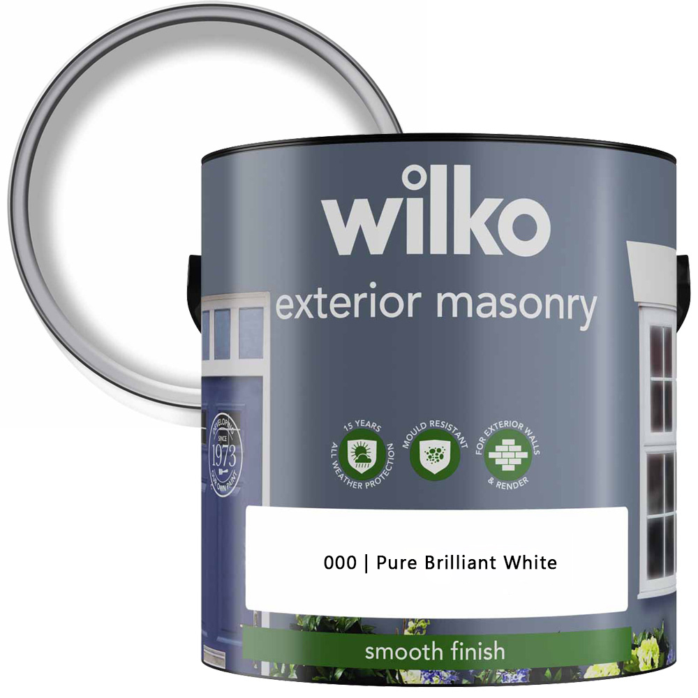 Offering 15 years of all-weather defence, Wilko Exterior Masonry Smooth Paint 5L ensures long-lasting protection for your home. The smooth finish formulation provides maximum protection against the elements, along with being mould resistant* and designed to resist airborne dirt and grime. UV resistant, this paint dries in 4-6 hours. One 5L can will cover approximately 50 square metres**, equivalent to roughly 5 1/2 standard garage doors after two coats (**Coverage is approximate and depends on the surface of your walls; see the back of the can for more details). *This paint contains a biocide to protect the dry paint surface from mould degradation.