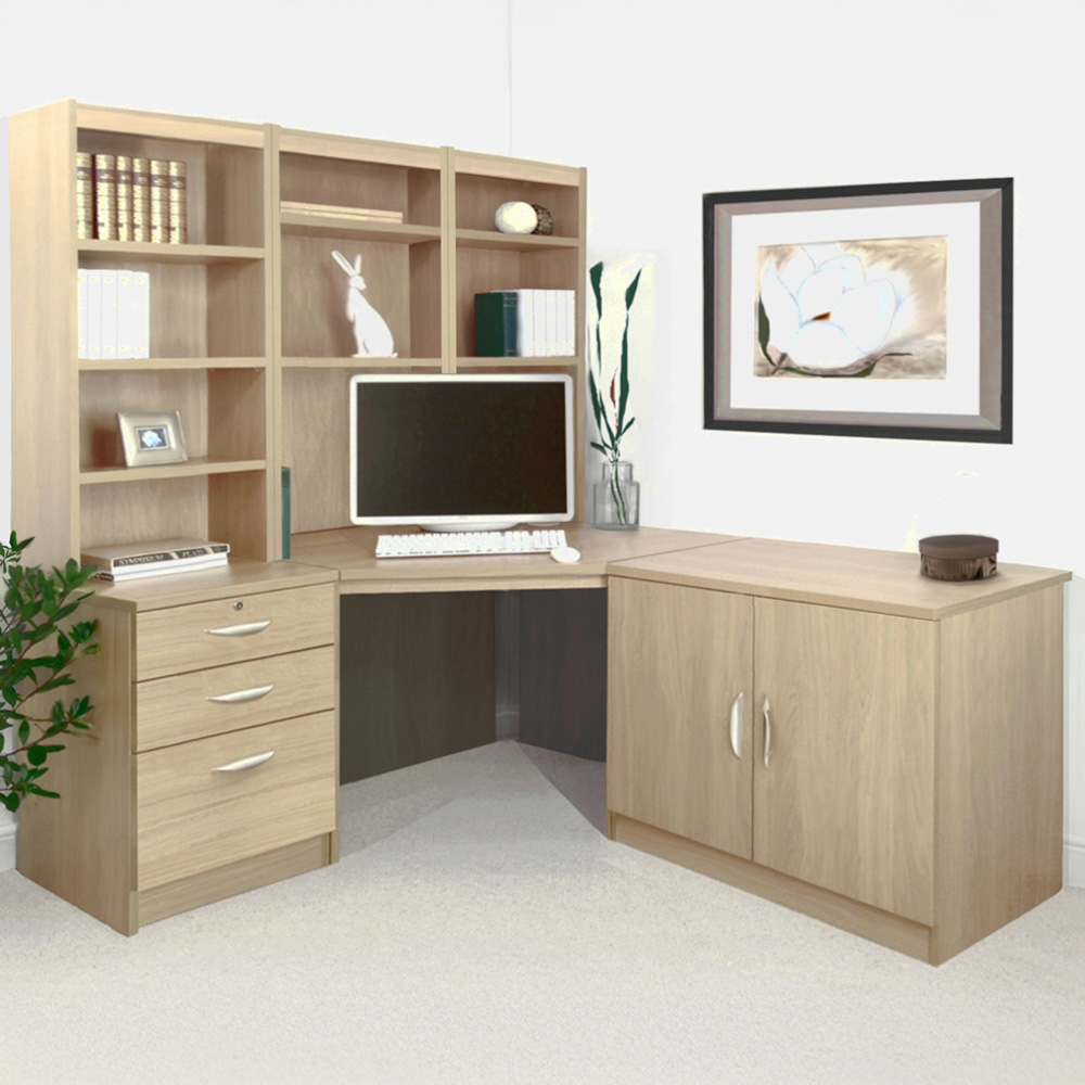Keep your work essentials neatly organised with this Home Office Furniture Set from R White Cabinets. Featuring a woodgrain finish in a sandstone colour, this hand-finished cabinet has a modern layout to meet the storage demands of a relaxed and inviting workspace. Made from furniture-quality MFC, it's also resistant to hot cups and scratches. The top features a 40mm overhang to the rear for clearance of plugs etc. All panels are 18mm thick, including the important back panel which ensures added strength and rigidity. Complete with an easy-to-read assembly guide, it has built-in fixings that require just a crosshead screwdriver to complete. Note: Please be aware that this product is of superior quality and therefore heavy. You may require assistance for room placement. All units are pre-assembled before packing to ensure easy assembly on arrival. The furniture will arrive fully assembled; however, the desk and hutches are best sent disassembled due to their size.