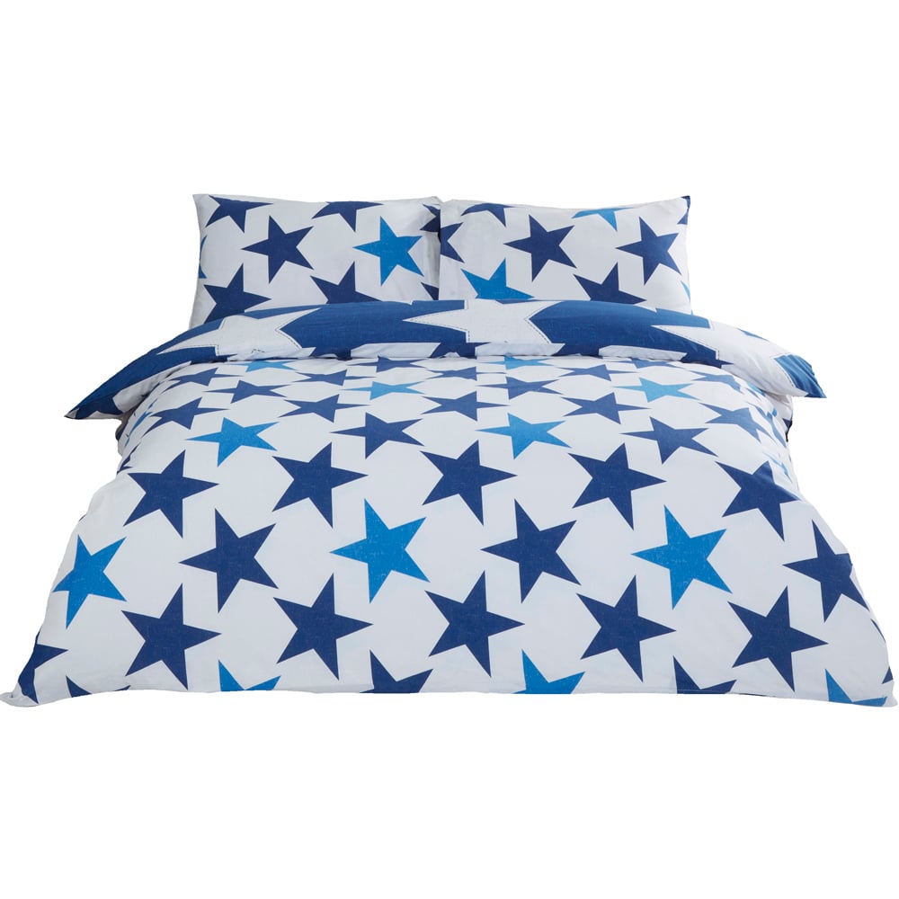 Elevate your bedroom with the Double Navy All Stars Duvet Set. A captivating scatter of stars across the navy front is complemented by a smaller, repeated star design on the reverse, offering a fully reversible design with a stylish contrasting background. This striking printed bedding, perfect for all ages, includes a 200 x 200cm duvet cover and two matching 50 x 75cm pillowcases. Convenient popper closures complete the set.