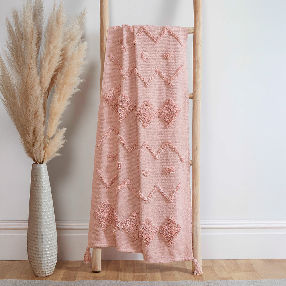Rapport Home Juniper Blush Tufted Cotton Blanket Throw 50 x 60cm
