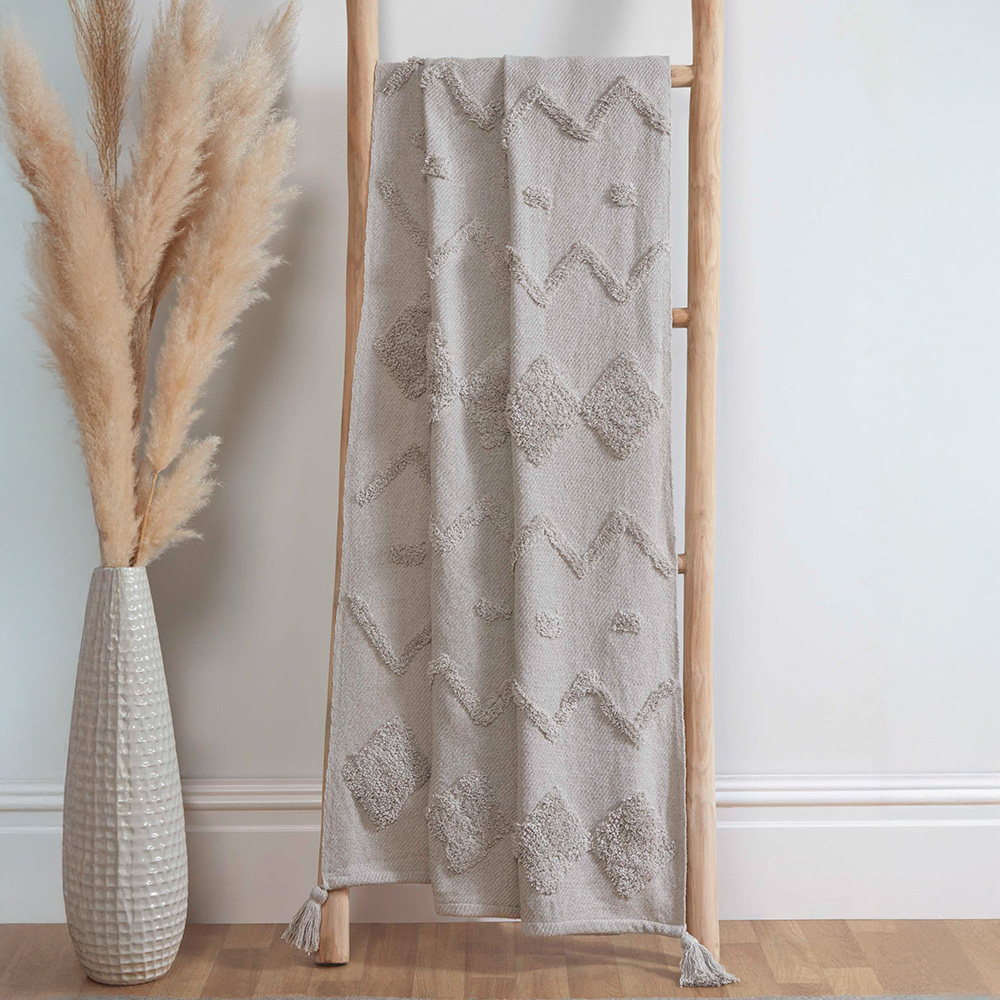 Rapport Home Juniper Silver Tufted Cotton Blanket Throw 50 x 60cm