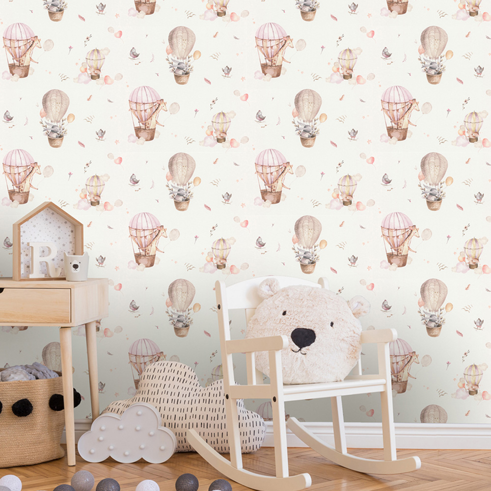 Transform your child',s room with the enchanting Balloon Ride Pink Wallpaper. Featuring adorable animals embarking on a whimsical balloon adventure, this wallpaper',s soft pink hue creates a charming and playful atmosphere. The delightful design adds a touch of fun to any kid',s space. Easy to apply with its paste-the-wall design, this wallpaper ensures a quick and straightforward decorating experience, letting you effortlessly create a room filled with joy.