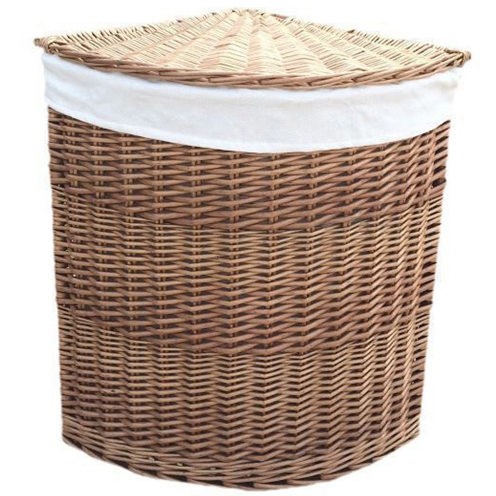 Keep your laundry neatly contained with this spacious corner laundry basket. Crafted from high-quality, light steamed willow, its natural finish adds a touch of rustic charm to your laundry space. The generously sized basket (H60 x W46 x L46cm) boasts a white lining for a clean, fresh look. A perfect blend of functionality and style for your home.