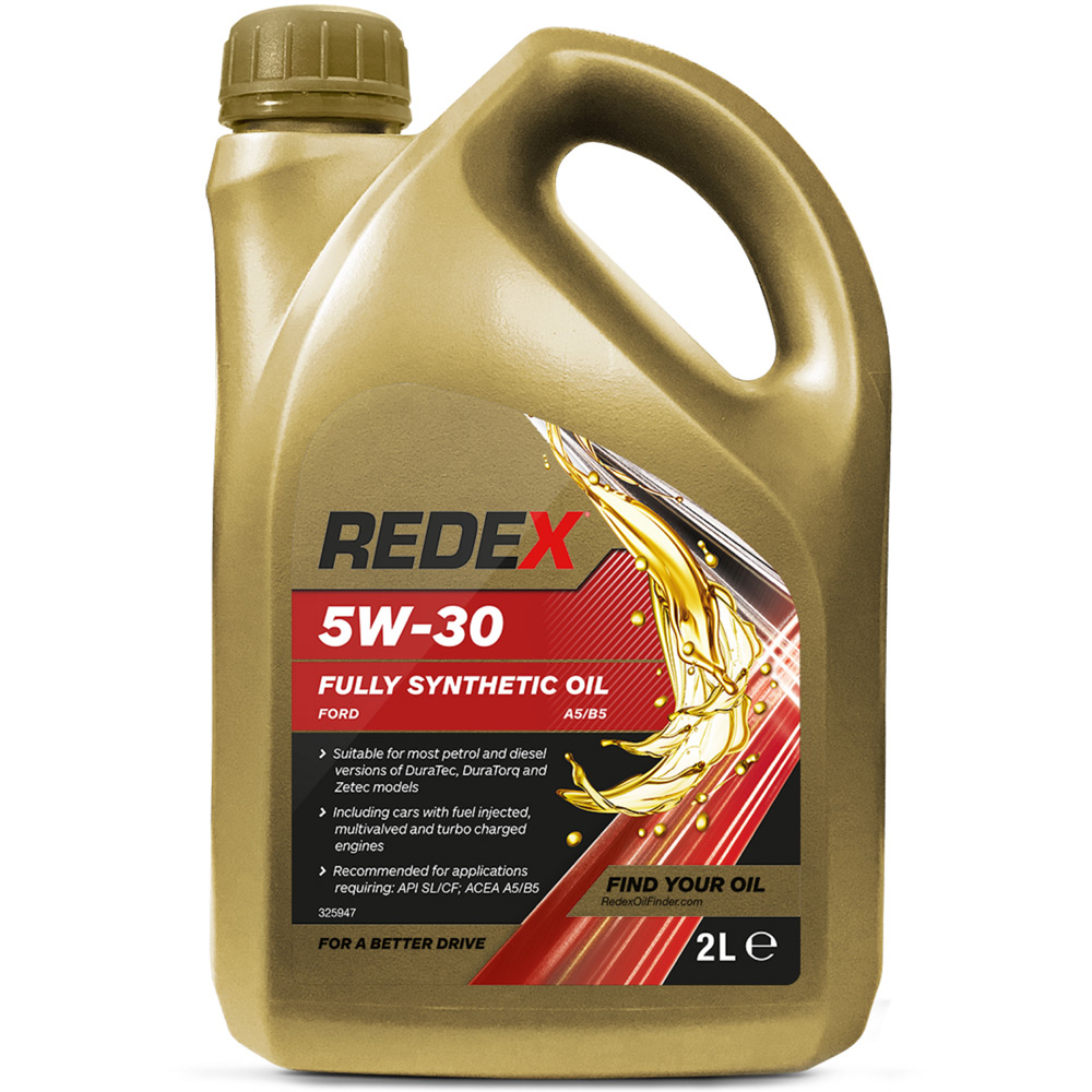 Engineered for Ford vehicles, Redex 5W-30 fully synthetic motor oil provides continuous protection. Suitable for most DuraTec, DuraTorq, and Zetec petrol and diesel engines, including fuel-injected, multi-valve, and turbocharged models. This premium oil offers superior protection and lubrication, eliminating the need for additional oil improvers. Meets API SL CF/ACEA A5/B5 specifications.